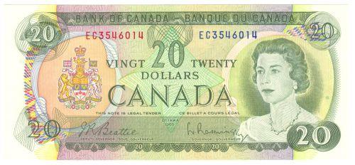 Bank of Canada $20.00 note 1969 in Uncirculated, BC-50a, Beattie Rasminsky, EC3546014.