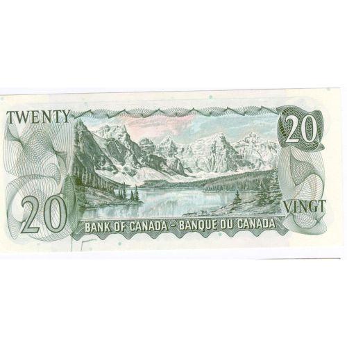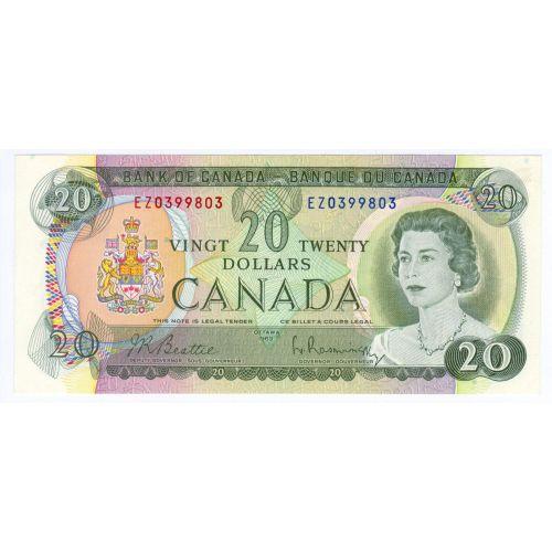 Bank of Canada, $20.00 Error note 1969, grade UNC, Charlton # BC-50a, signature Beattie Rasminsky, serial EZ0399803. Ink smear on the reverse of the note.