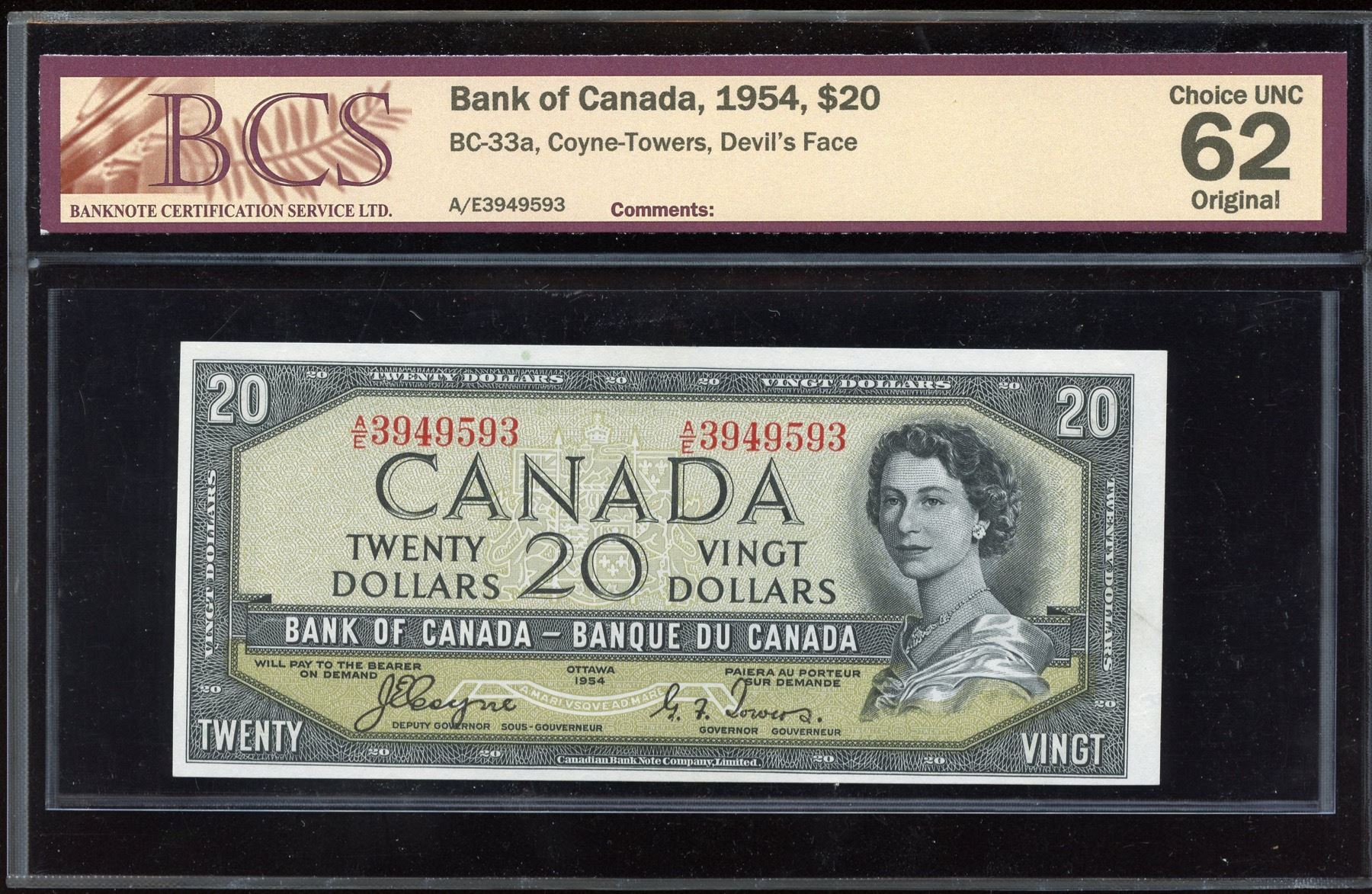 BC-33a. BCS Choice Unc. 62, original. S/N: A/E3949593.