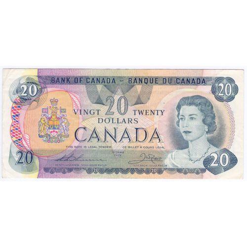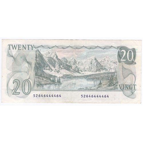 Bank of Canada, $20.00 2 Digit Radar note 1979, grade Very-Fine, Charlton # BC-54c, signature Thiessen Crow, serial 52646444464. Scarce radar note, (only the last seven digit are consider for radar).