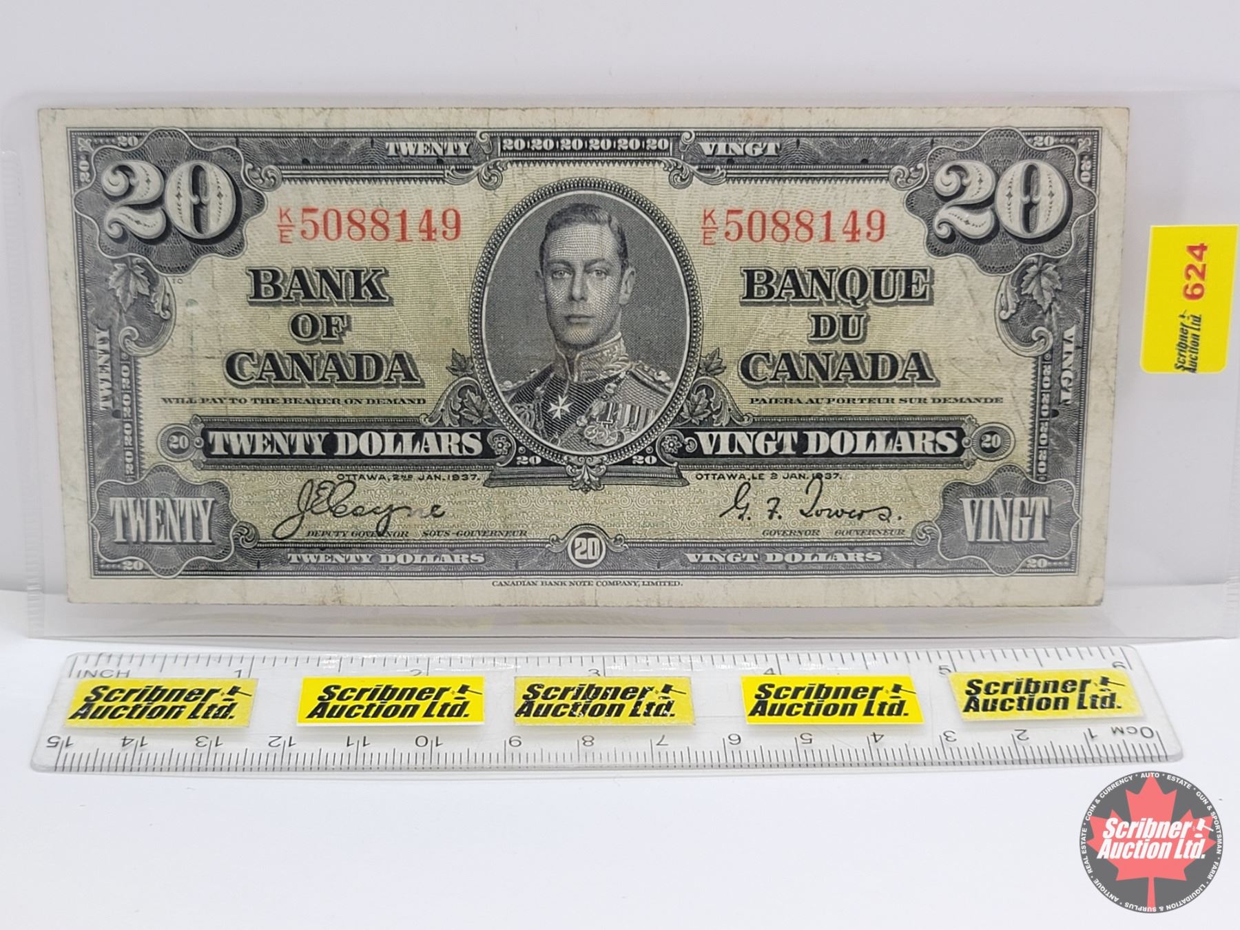 Bank of Canada $20 Bill 1937 : Coyne/Towers #KE5088149 (See Pics for Varieties, Conditions, Serial Numbers & Signatures)
