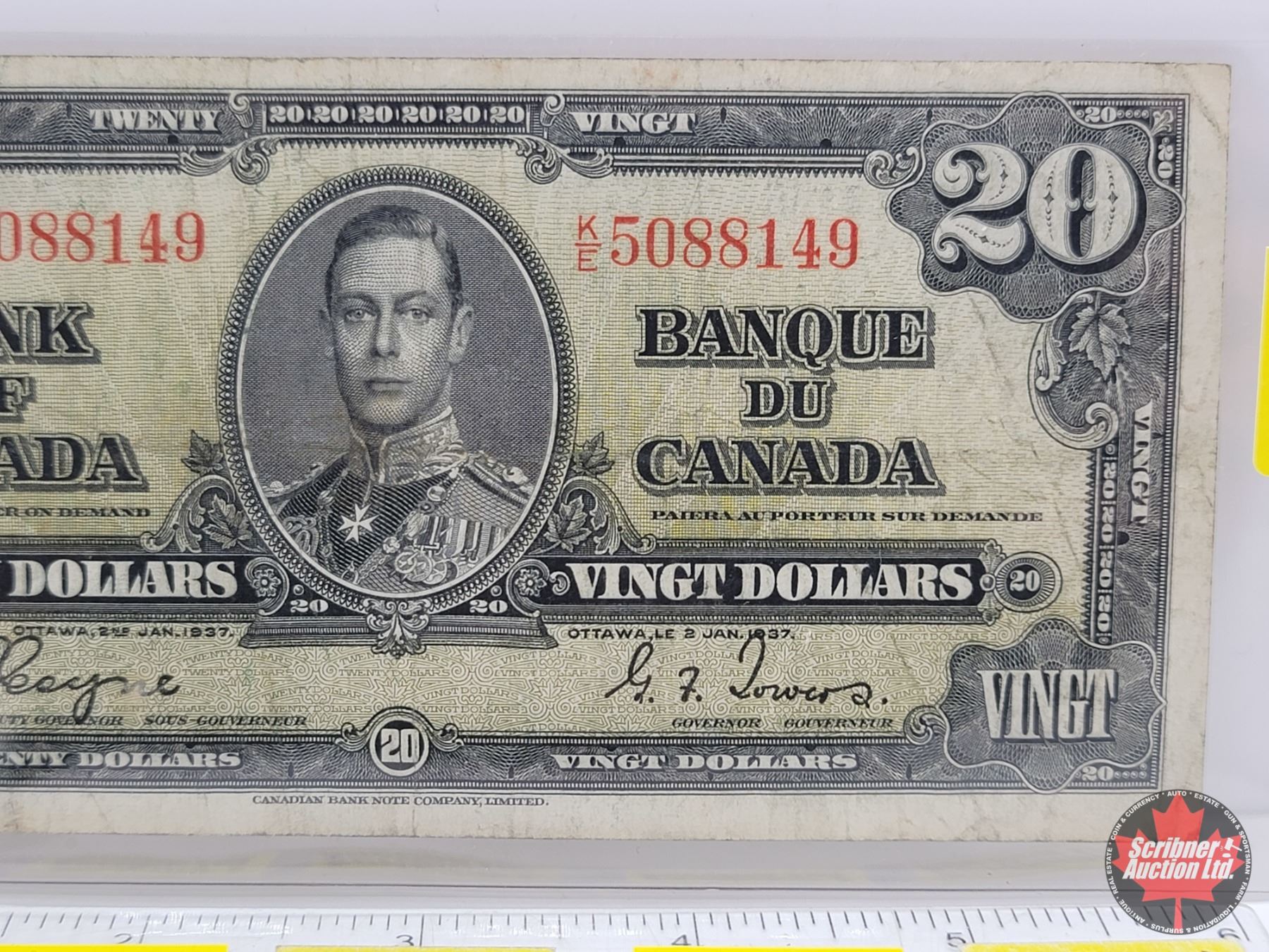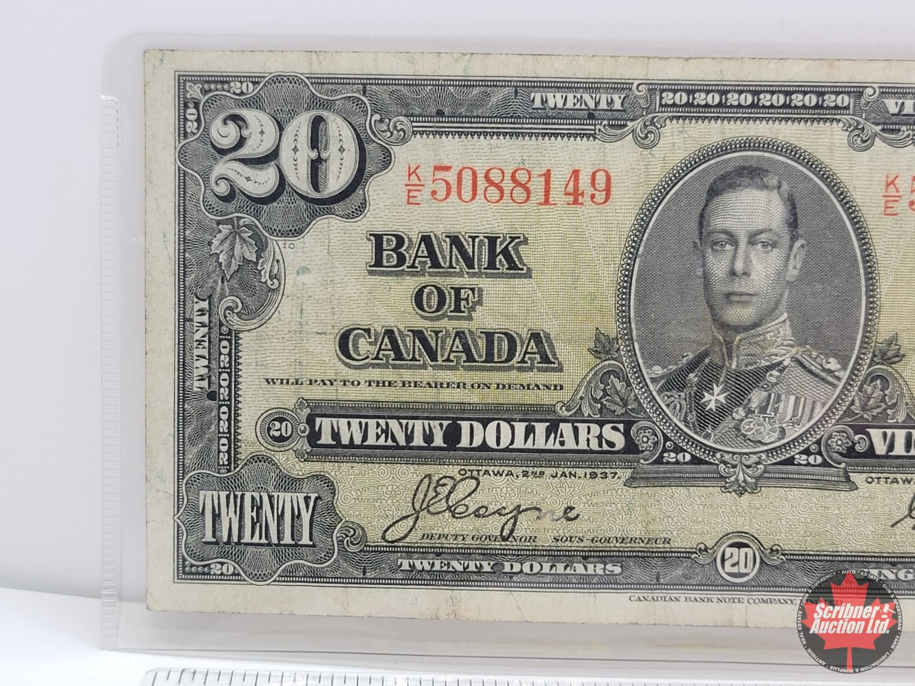 Bank of Canada $20 Bill 1937 : Coyne/Towers #KE5088149 (See Pics for Varieties, Conditions, Serial N