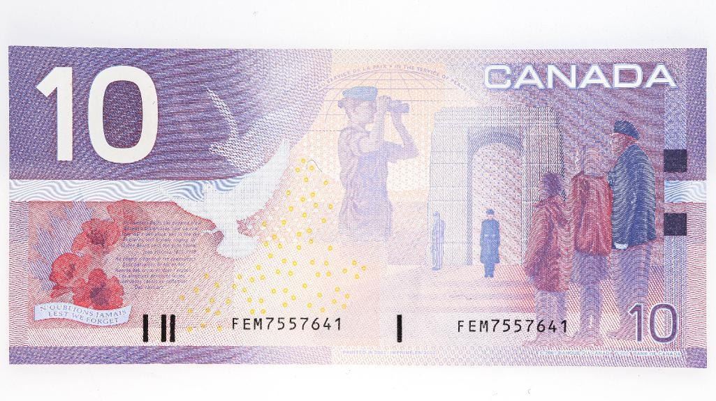 Bank of Canada 2001 $10 FEM UNC 7.5-8.2
