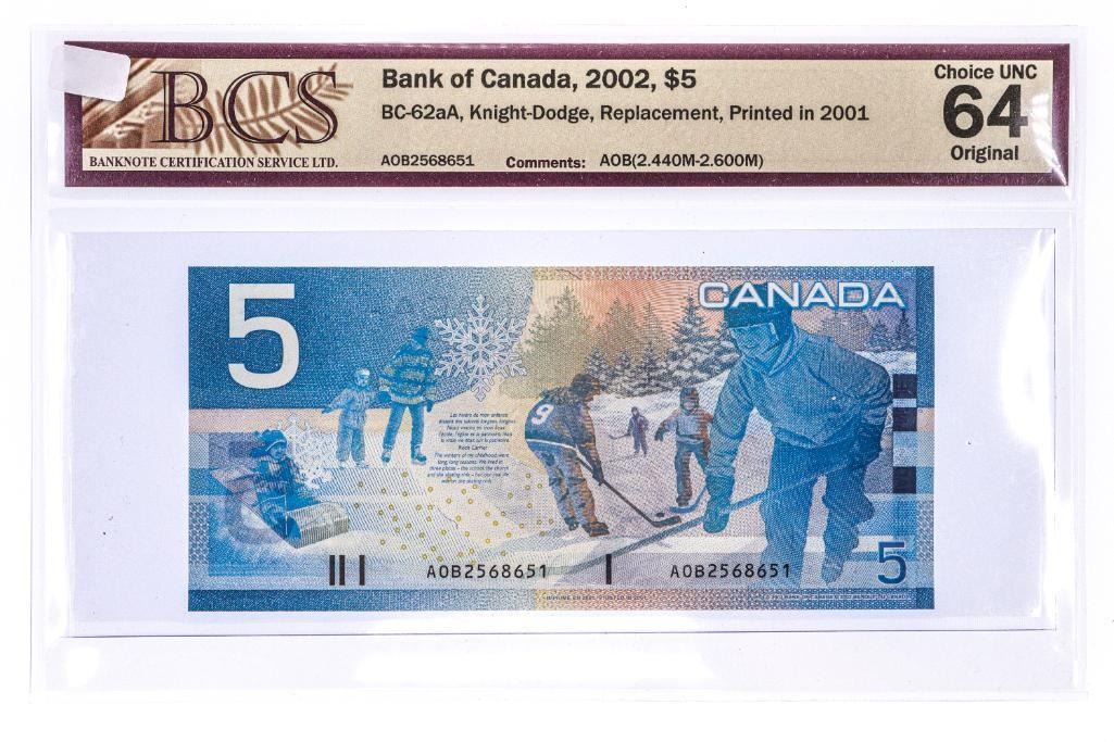 Bank of Canada 2002, $5 Choice UNC 64 , Replacement Printed in 2001 BCS