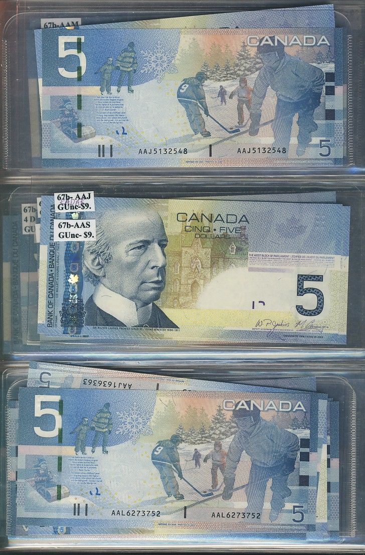 Bank of Canada 2005-2010 $5 Banknote Lot. Includes RADAR issues & some particular number series. Mainly UNC. (fc $295)