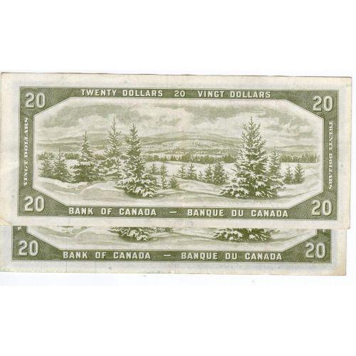 Bank of Canada, 2x$20 Devil's Face 1954 VF