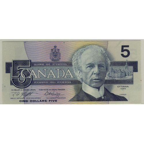 Bank of Canada, $5.00 insert note 1986, graded CCCS Choice UNC-63, BC-56eA, signature Knight Dodge, serial HNA9854659.