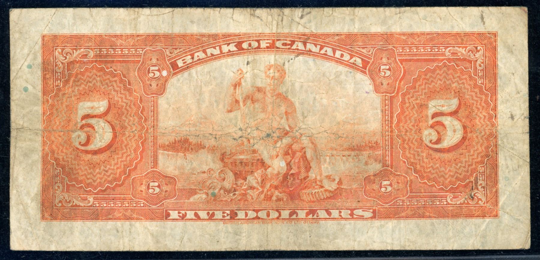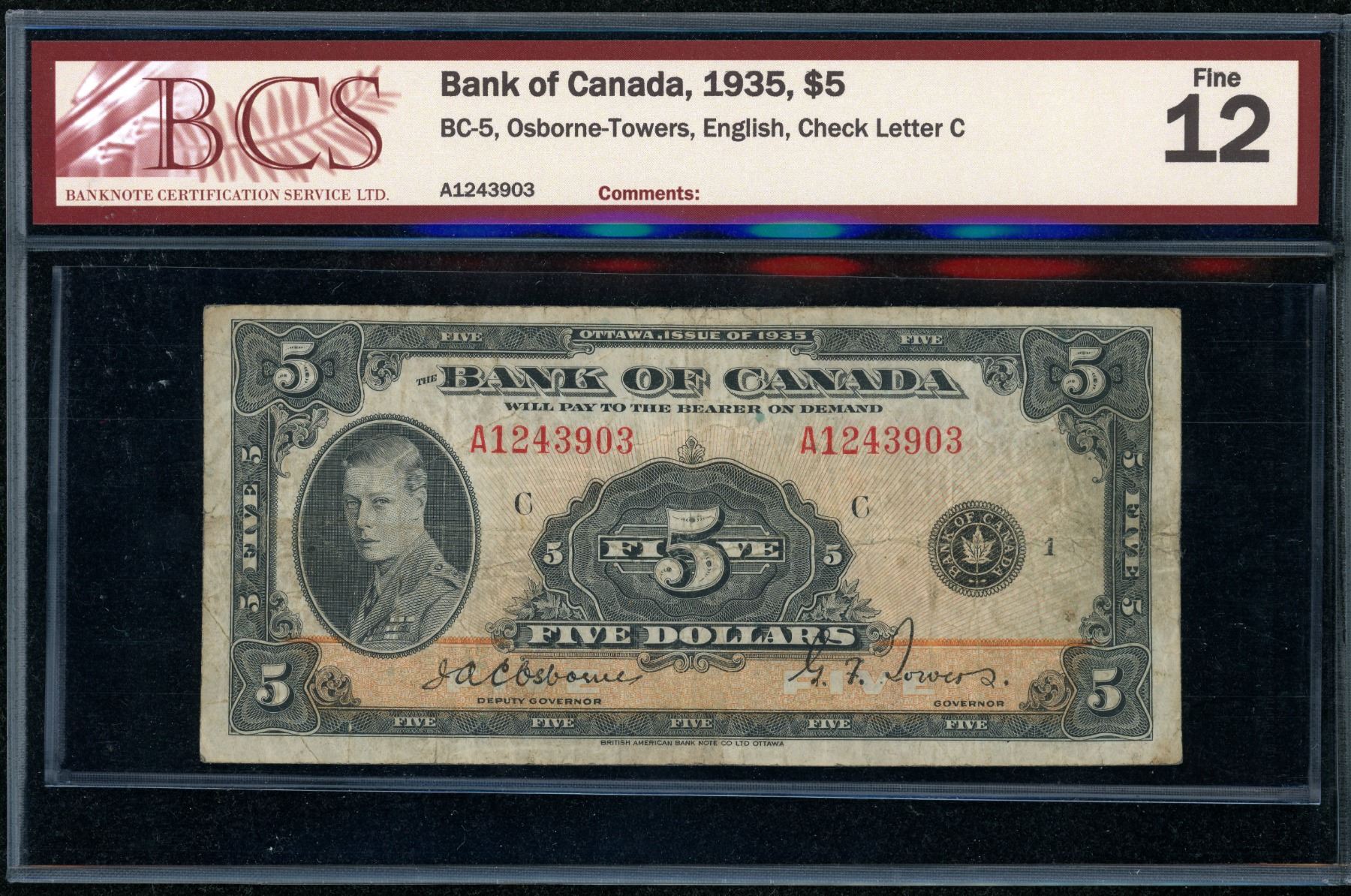 Five Dollars 1935 English issue (BC-5) #A1243903, BCS Fine-12