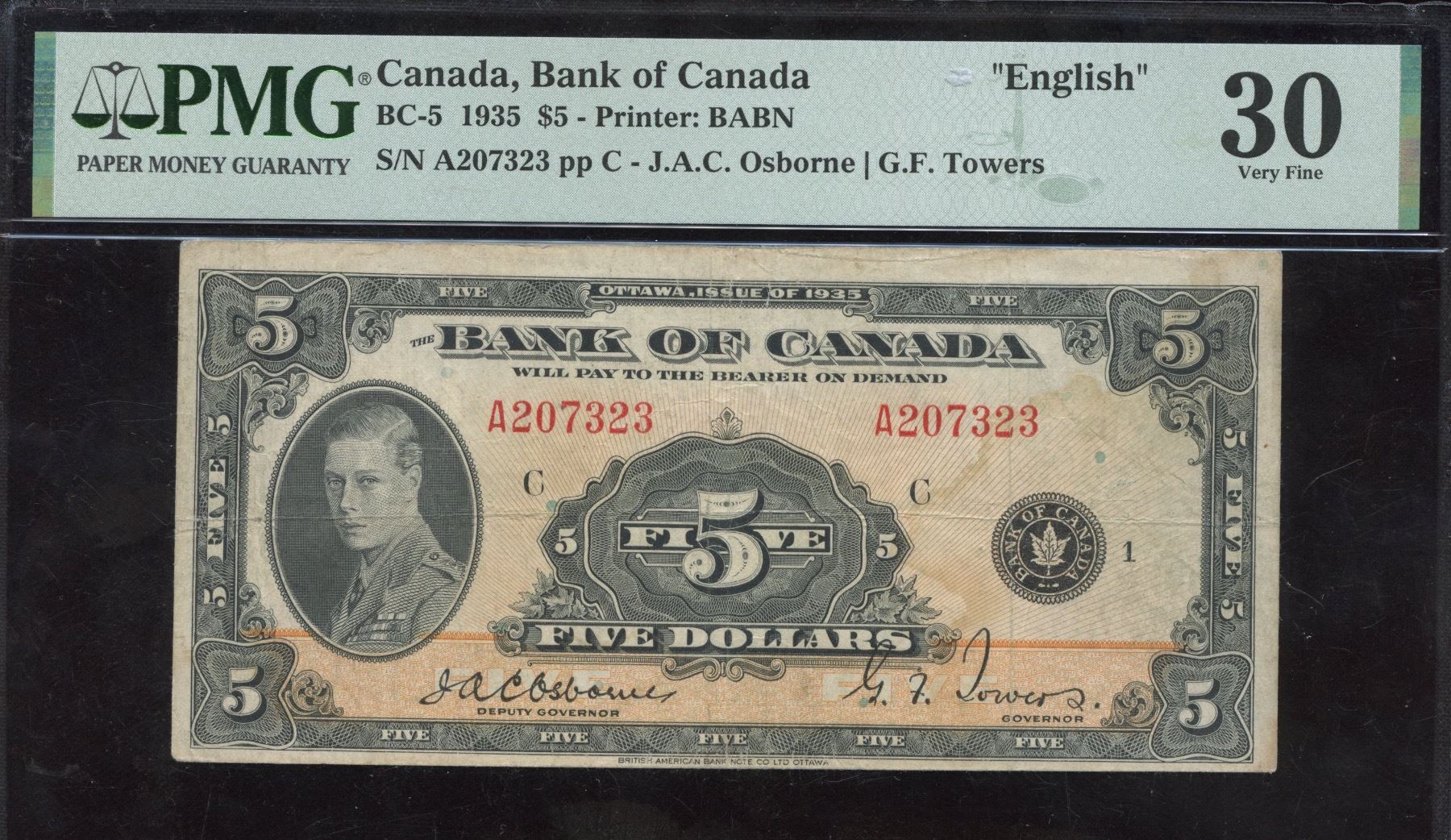 BC-5. PMG Very Fine 30. S/N: A207323/C