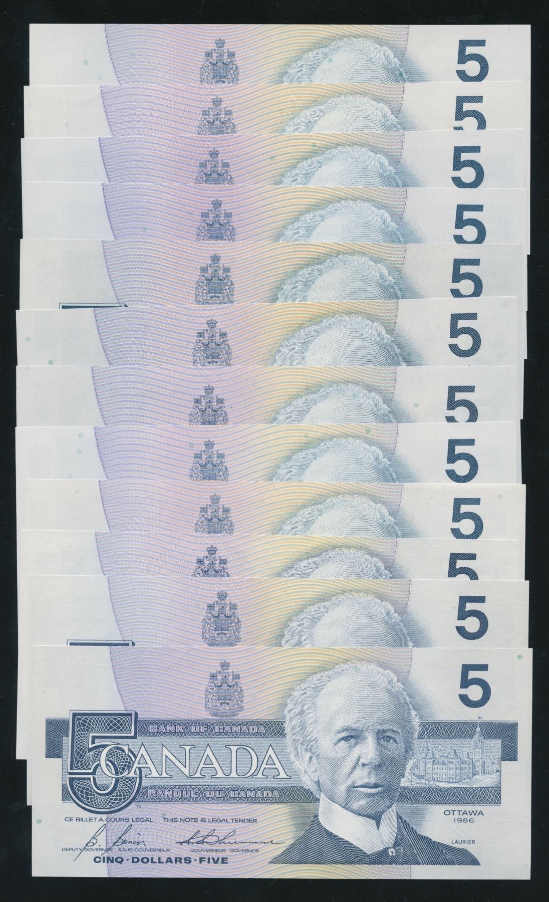 Bank of Canada $5, 1986 - Uncirculated Group of 12 Notes