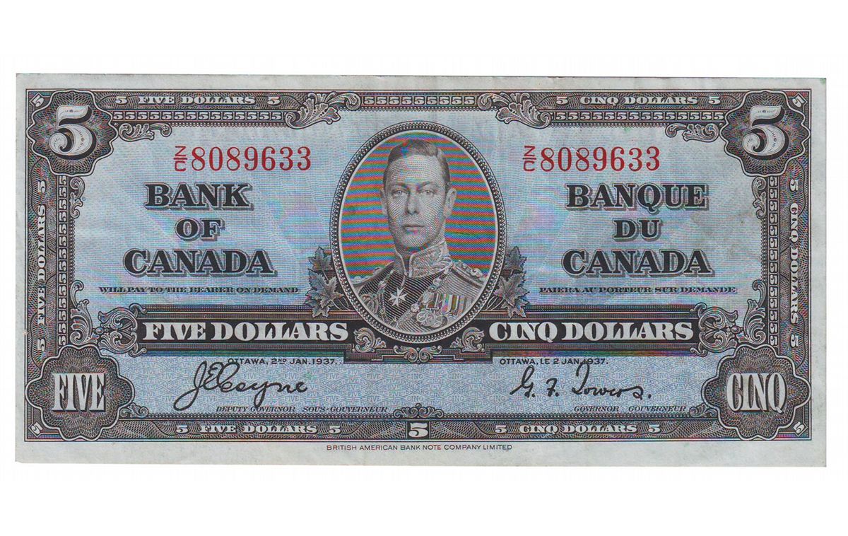 Bank of Canada; 5 dollars 1937 BC-23c Coyne Towers Z/C8089633 PCGS VF-30PPQ.