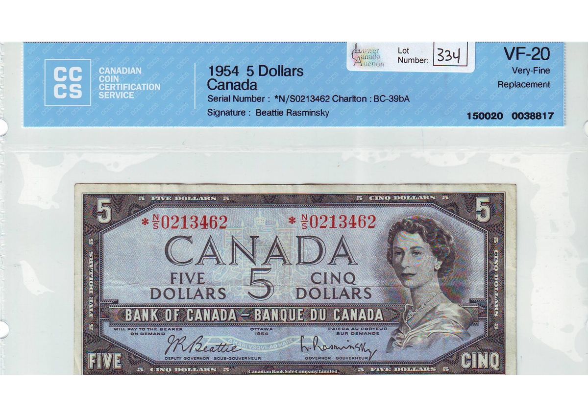 Bank of Canada; 5 dollars 1954 Modified Replacement BC-39bA Beattie Rasminsky *N/S0213462 CCCS VF-20.