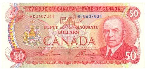Bank of Canada $50.00 note 1975 in Uncirculated, BC-51a, Lawson Bouey, HC4607431.