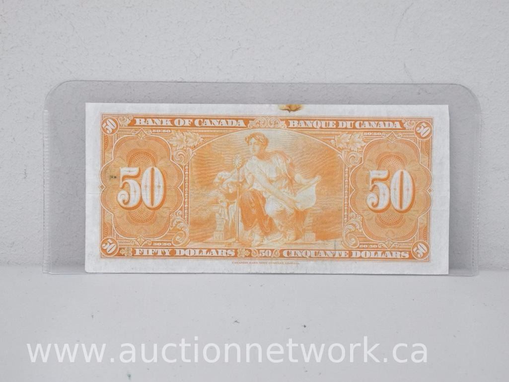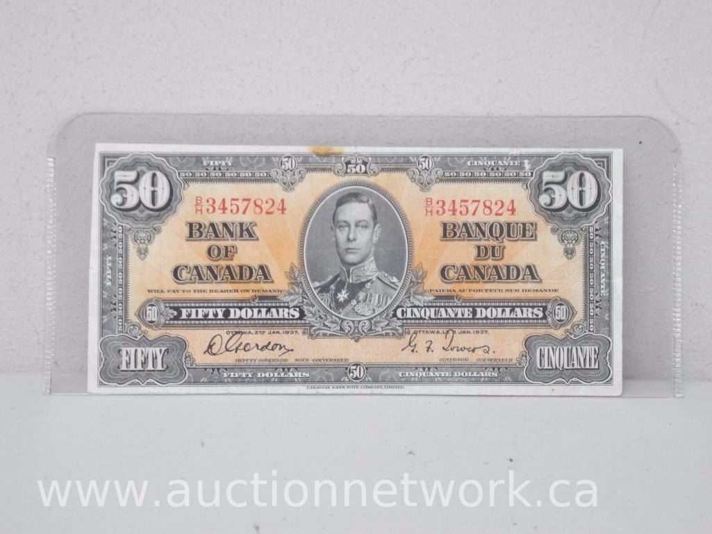 Bank of Canada $50.00 Fifty Dollars Note B/H 3457824 (Jan 2nd,1937) Gordon Towers