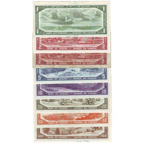 Bank of Canada, 8 notes $1.00 to $100.00 1954