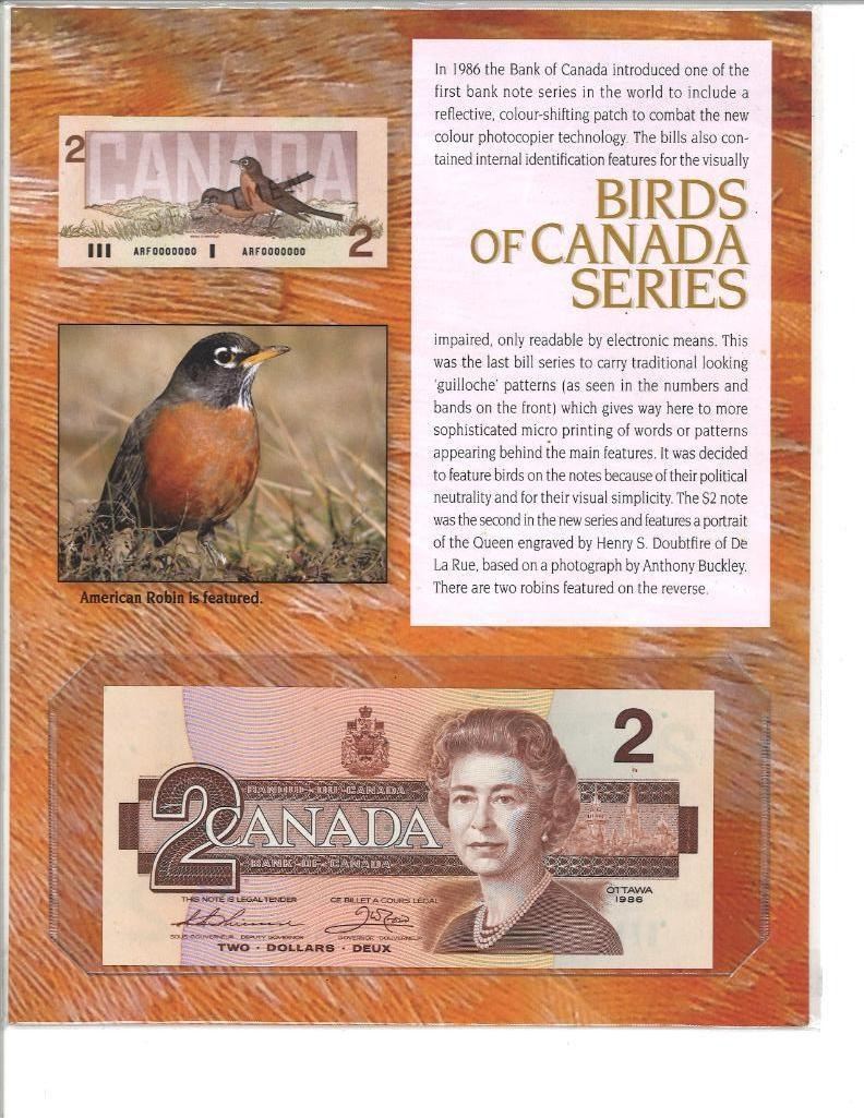 Bank of Canada - Birds Series $2 1986 - Recalled in 2020, on Giclee Display Art card