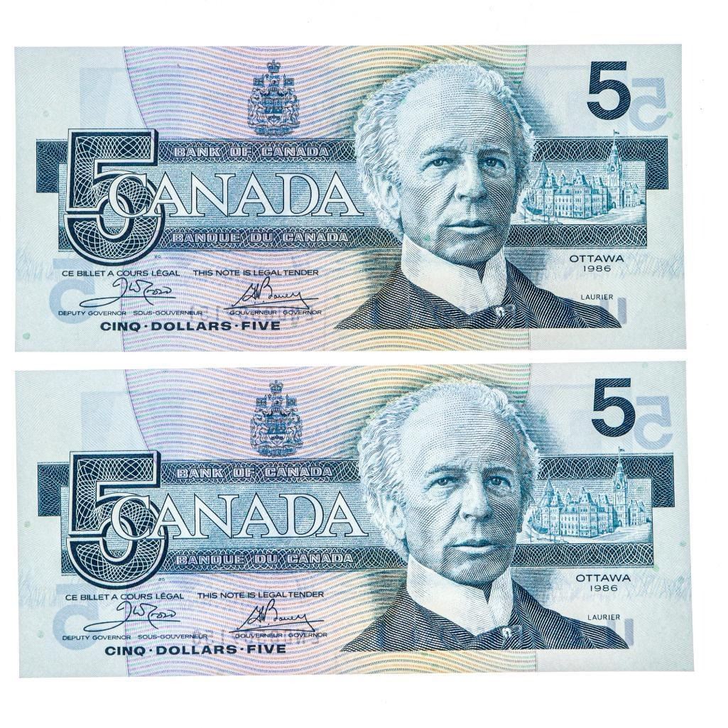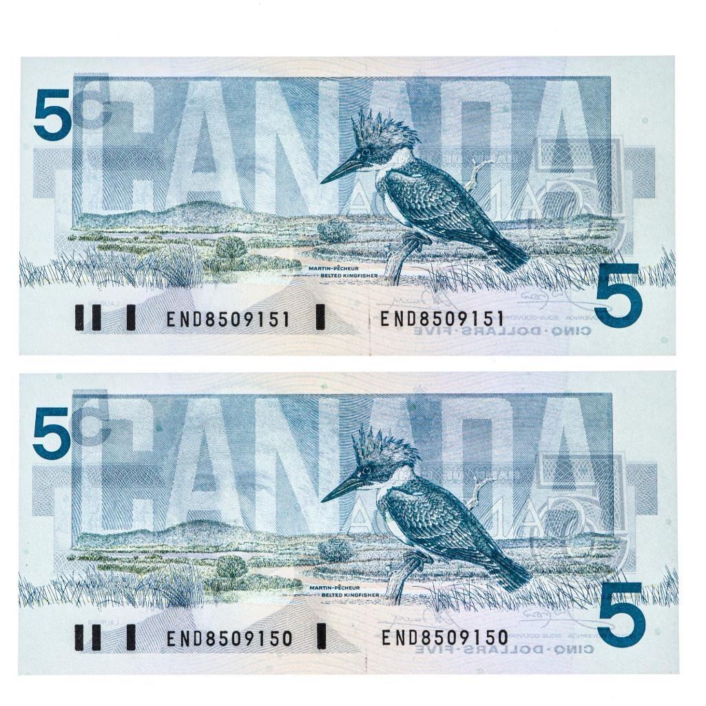 Bank of Canada Lot 2 x $5 (END) In Sequence GEM UNC
