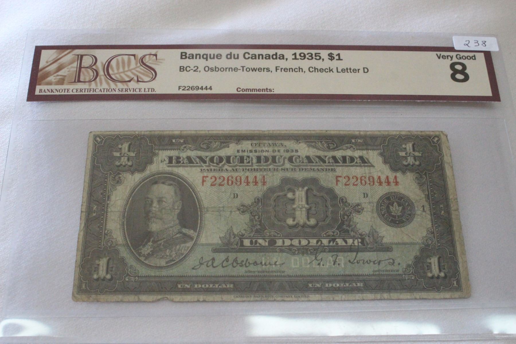 1935; Osbourne/Towers; F2269444; Graded '8VG' by Banknote Certification Service Ltd.