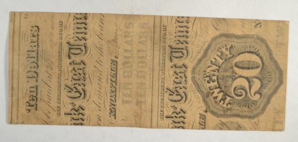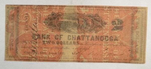 Bank of Chattanooga $2 note printed on backs of $10 and $20 notes