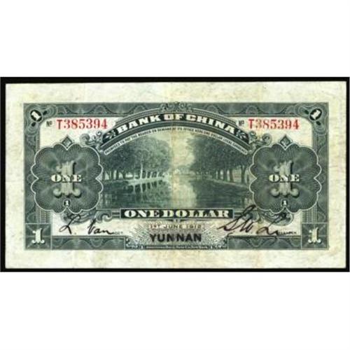 <style type="text/css"> body, td, th { font-family: Arial, Helvetica, sans-serif; font-size: 12px; color: #482424; margin: 0px; padding: 0px; } #header { background-image: url(http://www.bowersandmerena.com/ebay/images/template_v3_01.gif); clear: both; background-color: #590303; border-top-width: 2px; border-top-style: solid; border-top-color: #B38C4F; } #header #header_wrapper { height: 75px; clear: both; width: 800px; margin-right: auto; margin-left: auto; background-image: url(http://www.bowersandmerena.com/ebay/images/template_v3_03.gif); background-repeat: no-repeat; background-position: right; color: #F3EDCC; } #header #header_wrapper #header_logo { float: left; height: 75px; width: 444px; background-image: url(http://www.bowersandmerena.com/ebay/images/template_v3_02.gif); background-repeat: no-repeat; font-size: 10px; text-transform: capitalize; color: #B38C4F; } #header #header_wrapper #header_right { float: left; height: 75px; width: 356px; text-align: right; } #header #header_wrapper #header_right #headerLoginBtn { margin-bottom: 30px; } #header #header_wrapper #header_right input#txtSearch { color: #B49056; border: 1px solid #B49056; width: 175px; padding-top: 3px; padding-right: 3px; padding-bottom: 4px; padding-left: 3px; } #nav { height: 37px; background-image: url(http://www.bowersandmerena.com/ebay/images/template_v3_05.gif); clear: both; } #nav #nav_wrapper { height: 35px; width: 800px; margin-right: auto; margin-left: auto; border-left-width: 1px; border-left-style: solid; border-left-color: #B38C4F; } #nav #nav_wrapper a { padding-right: 15px; padding-left: 15px; border-right-width: 1px; border-right-style: solid; border-right-color: #B38C4F; height: 25px; padding-top: 10px; display: block; float: left; text-decoration: none; font-weight: bold; color: #5D0303; } #nav #nav_wrapper a:hover { color: #B38C4F; } #nav #nav_wrapper #search { float: right; padding-top: 7px; } #nav #nav_wrapper #search #txtSearch { font-family: Arial, Helvetica, sans-serif; font-size: 10px; text-transform: uppercase; color: #D2AE75; border: 1px solid #B38C4F; padding: 3px; } #content_bgd { background-image: url(http://www.bowersandmerena.com/ebay/images/template_v3_09.gif); background-repeat: repeat-y; background-position: center; padding-top: 15px; padding-bottom: 15px; background-color: #FBFBDB; } #content_wrapper { clear: both; height: auto; width: 800px; margin-right: auto; margin-left: auto; } .LotDetailWhite { line-height:normal; font-size:13px; font-family: arial,helvetica,sans-serif; color: White; font-weight: bold; } .LotDetailInformation { line-height:normal; font-size: 13px; font-family: arial,helvetica,sans-serif; } .LotDetailMessage { line-height:normal; font-size: 13px; font-family: arial,helvetica,sans-serif; color: red; } } tr.HeaderAuctionTitle td { color: #000000; font-weight: bold; padding: 2px; background-image: url(http://www.bowersandmerena.com/ebay/images/template_v3_05.gif); background-repeat: repeat-x; border-bottom-width: 1px; border-bottom-style: solid; border-bottom-color: #B38C4F; } table.AuctionSummary a, table.AuctionSummary a:link, table.AuctionSummary a:visited { color: #0000FF; text-decoration: none; } } td.tableHeaderLeft { border-left-width: 1px; border-left-style: solid; border-left-color: #B38C4F; } td.tableHeaderRight { border-right-width: 1px; border-right-style: solid; border-right-color: #B38C4F; } td.tableCellMiddle { border-left-width: 1px; border-left-style: solid; border-left-color: #B38C4F; border-right-width: 1px; border-right-style: solid; border-right-color: #B38C4F; padding: 5px; } tr.footer td { border-top-width: 1px; border-top-style: solid; border-top-color: #B38C4F; } </style> </head> <body> <div id="header"> <div id="header_wrapper"> <div id="header_logo"> </div> <div id="header_right"> </div> </div> </div> <div id="nav"> <div id="nav_wrapper"> <a href="http://www.bowersandmerena.com">Our eBayLive Auctions</a> <a href="#PaymentInfo">Payment Information</a> <a href="#ShippingInfo">Shipping Information</a> <a href="#About">About Bowers and Merena</a> </div> </div> <div id="content_bgd"> <div id="content_wrapper"> <table width="100%" border="0" cellpadding="5" cellspacing="0" class="AuctionSummary"> <tbody> <tr class="HeaderAuctionTitle" style="height: 25px;"> <td align="left" class="tableHeaderLeft" > </td> <td align="center" class="tableHeaderRight"> <span style="font-size: large;">Lot #57. China--Empire. Bank of China, 1912 Issues.</span> </td> </tr> <tr> <td colspan="3" class="tableCellMiddle"> Yunnan, P-25s, $1, 1912, XF condition.