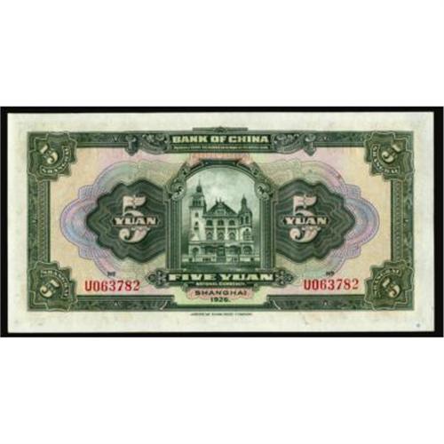 <style type="text/css"> body, td, th { font-family: Arial, Helvetica, sans-serif; font-size: 12px; color: #482424; margin: 0px; padding: 0px; } #header { background-image: url(http://www.bowersandmerena.com/ebay/images/template_v3_01.gif); clear: both; background-color: #590303; border-top-width: 2px; border-top-style: solid; border-top-color: #B38C4F; } #header #header_wrapper { height: 75px; clear: both; width: 800px; margin-right: auto; margin-left: auto; background-image: url(http://www.bowersandmerena.com/ebay/images/template_v3_03.gif); background-repeat: no-repeat; background-position: right; color: #F3EDCC; } #header #header_wrapper #header_logo { float: left; height: 75px; width: 444px; background-image: url(http://www.bowersandmerena.com/ebay/images/template_v3_02.gif); background-repeat: no-repeat; font-size: 10px; text-transform: capitalize; color: #B38C4F; } #header #header_wrapper #header_right { float: left; height: 75px; width: 356px; text-align: right; } #header #header_wrapper #header_right #headerLoginBtn { margin-bottom: 30px; } #header #header_wrapper #header_right input#txtSearch { color: #B49056; border: 1px solid #B49056; width: 175px; padding-top: 3px; padding-right: 3px; padding-bottom: 4px; padding-left: 3px; } #nav { height: 37px; background-image: url(http://www.bowersandmerena.com/ebay/images/template_v3_05.gif); clear: both; } #nav #nav_wrapper { height: 35px; width: 800px; margin-right: auto; margin-left: auto; border-left-width: 1px; border-left-style: solid; border-left-color: #B38C4F; } #nav #nav_wrapper a { padding-right: 15px; padding-left: 15px; border-right-width: 1px; border-right-style: solid; border-right-color: #B38C4F; height: 25px; padding-top: 10px; display: block; float: left; text-decoration: none; font-weight: bold; color: #5D0303; } #nav #nav_wrapper a:hover { color: #B38C4F; } #nav #nav_wrapper #search { float: right; padding-top: 7px; } #nav #nav_wrapper #search #txtSearch { font-family: Arial, Helvetica, sans-serif; font-size: 10px; text-transform: uppercase; color: #D2AE75; border: 1px solid #B38C4F; padding: 3px; } #content_bgd { background-image: url(http://www.bowersandmerena.com/ebay/images/template_v3_09.gif); background-repeat: repeat-y; background-position: center; padding-top: 15px; padding-bottom: 15px; background-color: #FBFBDB; } #content_wrapper { clear: both; height: auto; width: 800px; margin-right: auto; margin-left: auto; } .LotDetailWhite { line-height:normal; font-size:13px; font-family: arial,helvetica,sans-serif; color: White; font-weight: bold; } .LotDetailInformation { line-height:normal; font-size: 13px; font-family: arial,helvetica,sans-serif; } .LotDetailMessage { line-height:normal; font-size: 13px; font-family: arial,helvetica,sans-serif; color: red; } } tr.HeaderAuctionTitle td { color: #000000; font-weight: bold; padding: 2px; background-image: url(http://www.bowersandmerena.com/ebay/images/template_v3_05.gif); background-repeat: repeat-x; border-bottom-width: 1px; border-bottom-style: solid; border-bottom-color: #B38C4F; } table.AuctionSummary a, table.AuctionSummary a:link, table.AuctionSummary a:visited { color: #0000FF; text-decoration: none; } } td.tableHeaderLeft { border-left-width: 1px; border-left-style: solid; border-left-color: #B38C4F; } td.tableHeaderRight { border-right-width: 1px; border-right-style: solid; border-right-color: #B38C4F; } td.tableCellMiddle { border-left-width: 1px; border-left-style: solid; border-left-color: #B38C4F; border-right-width: 1px; border-right-style: solid; border-right-color: #B38C4F; padding: 5px; } tr.footer td { border-top-width: 1px; border-top-style: solid; border-top-color: #B38C4F; } </style> </head> <body> <div id="header"> <div id="header_wrapper"> <div id="header_logo"> </div> <div id="header_right"> </div> </div> </div> <div id="nav"> <div id="nav_wrapper"> <a href="http://www.bowersandmerena.com">Our eBayLive Auctions</a> <a href="#PaymentInfo">Payment Information</a> <a href="#ShippingInfo">Shipping Information</a> <a href="#About">About Bowers and Merena</a> </div> </div> <div id="content_bgd"> <div id="content_wrapper"> <table width="100%" border="0" cellpadding="5" cellspacing="0" class="AuctionSummary"> <tbody> <tr class="HeaderAuctionTitle" style="height: 25px;"> <td align="left" class="tableHeaderLeft" > </td> <td align="center" class="tableHeaderRight"> <span style="font-size: large;">Lot #84. China--Empire. Bank of China, 1926 Issue.</span> </td> </tr> <tr> <td colspan="3" class="tableCellMiddle"> Shanghai, P-66a., 1926, 5 Yuan, Unc.-Choice Unc. condition, high grade for this note.