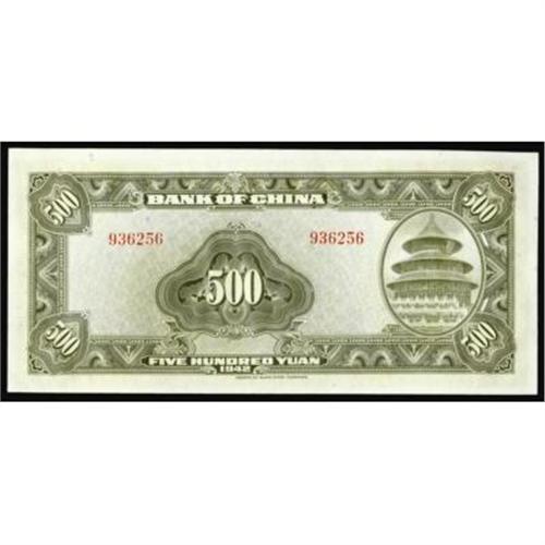 <style type="text/css"> body, td, th { font-family: Arial, Helvetica, sans-serif; font-size: 12px; color: #482424; margin: 0px; padding: 0px; } #header { background-image: url(http://www.bowersandmerena.com/ebay/images/template_v3_01.gif); clear: both; background-color: #590303; border-top-width: 2px; border-top-style: solid; border-top-color: #B38C4F; } #header #header_wrapper { height: 75px; clear: both; width: 800px; margin-right: auto; margin-left: auto; background-image: url(http://www.bowersandmerena.com/ebay/images/template_v3_03.gif); background-repeat: no-repeat; background-position: right; color: #F3EDCC; } #header #header_wrapper #header_logo { float: left; height: 75px; width: 444px; background-image: url(http://www.bowersandmerena.com/ebay/images/template_v3_02.gif); background-repeat: no-repeat; font-size: 10px; text-transform: capitalize; color: #B38C4F; } #header #header_wrapper #header_right { float: left; height: 75px; width: 356px; text-align: right; } #header #header_wrapper #header_right #headerLoginBtn { margin-bottom: 30px; } #header #header_wrapper #header_right input#txtSearch { color: #B49056; border: 1px solid #B49056; width: 175px; padding-top: 3px; padding-right: 3px; padding-bottom: 4px; padding-left: 3px; } #nav { height: 37px; background-image: url(http://www.bowersandmerena.com/ebay/images/template_v3_05.gif); clear: both; } #nav #nav_wrapper { height: 35px; width: 800px; margin-right: auto; margin-left: auto; border-left-width: 1px; border-left-style: solid; border-left-color: #B38C4F; } #nav #nav_wrapper a { padding-right: 15px; padding-left: 15px; border-right-width: 1px; border-right-style: solid; border-right-color: #B38C4F; height: 25px; padding-top: 10px; display: block; float: left; text-decoration: none; font-weight: bold; color: #5D0303; } #nav #nav_wrapper a:hover { color: #B38C4F; } #nav #nav_wrapper #search { float: right; padding-top: 7px; } #nav #nav_wrapper #search #txtSearch { font-family: Arial, Helvetica, sans-serif; font-size: 10px; text-transform: uppercase; color: #D2AE75; border: 1px solid #B38C4F; padding: 3px; } #content_bgd { background-image: url(http://www.bowersandmerena.com/ebay/images/template_v3_09.gif); background-repeat: repeat-y; background-position: center; padding-top: 15px; padding-bottom: 15px; background-color: #FBFBDB; } #content_wrapper { clear: both; height: auto; width: 800px; margin-right: auto; margin-left: auto; } .LotDetailWhite { line-height:normal; font-size:13px; font-family: arial,helvetica,sans-serif; color: White; font-weight: bold; } .LotDetailInformation { line-height:normal; font-size: 13px; font-family: arial,helvetica,sans-serif; } .LotDetailMessage { line-height:normal; font-size: 13px; font-family: arial,helvetica,sans-serif; color: red; } } tr.HeaderAuctionTitle td { color: #000000; font-weight: bold; padding: 2px; background-image: url(http://www.bowersandmerena.com/ebay/images/template_v3_05.gif); background-repeat: repeat-x; border-bottom-width: 1px; border-bottom-style: solid; border-bottom-color: #B38C4F; } table.AuctionSummary a, table.AuctionSummary a:link, table.AuctionSummary a:visited { color: #0000FF; text-decoration: none; } } td.tableHeaderLeft { border-left-width: 1px; border-left-style: solid; border-left-color: #B38C4F; } td.tableHeaderRight { border-right-width: 1px; border-right-style: solid; border-right-color: #B38C4F; } td.tableCellMiddle { border-left-width: 1px; border-left-style: solid; border-left-color: #B38C4F; border-right-width: 1px; border-right-style: solid; border-right-color: #B38C4F; padding: 5px; } tr.footer td { border-top-width: 1px; border-top-style: solid; border-top-color: #B38C4F; } </style> </head> <body> <div id="header"> <div id="header_wrapper"> <div id="header_logo"> </div> <div id="header_right"> </div> </div> </div> <div id="nav"> <div id="nav_wrapper"> <a href="http://www.bowersandmerena.com">Our eBayLive Auctions</a> <a href="#PaymentInfo">Payment Information</a> <a href="#ShippingInfo">Shipping Information</a> <a href="#About">About Bowers and Merena</a> </div> </div> <div id="content_bgd"> <div id="content_wrapper"> <table width="100%" border="0" cellpadding="5" cellspacing="0" class="AuctionSummary"> <tbody> <tr class="HeaderAuctionTitle" style="height: 25px;"> <td align="left" class="tableHeaderLeft" > </td> <td align="center" class="tableHeaderRight"> <span style="font-size: large;">Lot #97. China--Empire. Bank of China, 1942 Issue.</span> </td> </tr> <tr> <td colspan="3" class="tableCellMiddle"> Lot of 2 notes, P-99, 1942, 500 Yuan, 2 different signature varieties, one is AU and the other is in Unc. to Choice Unc. condition.