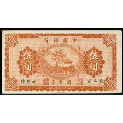 <style type="text/css"> body, td, th { font-family: Arial, Helvetica, sans-serif; font-size: 12px; color: #482424; margin: 0px; padding: 0px; } #header { background-image: url(http://www.bowersandmerena.com/ebay/images/template_v3_01.gif); clear: both; background-color: #590303; border-top-width: 2px; border-top-style: solid; border-top-color: #B38C4F; } #header #header_wrapper { height: 75px; clear: both; width: 800px; margin-right: auto; margin-left: auto; background-image: url(http://www.bowersandmerena.com/ebay/images/template_v3_03.gif); background-repeat: no-repeat; background-position: right; color: #F3EDCC; } #header #header_wrapper #header_logo { float: left; height: 75px; width: 444px; background-image: url(http://www.bowersandmerena.com/ebay/images/template_v3_02.gif); background-repeat: no-repeat; font-size: 10px; text-transform: capitalize; color: #B38C4F; } #header #header_wrapper #header_right { float: left; height: 75px; width: 356px; text-align: right; } #header #header_wrapper #header_right #headerLoginBtn { margin-bottom: 30px; } #header #header_wrapper #header_right input#txtSearch { color: #B49056; border: 1px solid #B49056; width: 175px; padding-top: 3px; padding-right: 3px; padding-bottom: 4px; padding-left: 3px; } #nav { height: 37px; background-image: url(http://www.bowersandmerena.com/ebay/images/template_v3_05.gif); clear: both; } #nav #nav_wrapper { height: 35px; width: 800px; margin-right: auto; margin-left: auto; border-left-width: 1px; border-left-style: solid; border-left-color: #B38C4F; } #nav #nav_wrapper a { padding-right: 15px; padding-left: 15px; border-right-width: 1px; border-right-style: solid; border-right-color: #B38C4F; height: 25px; padding-top: 10px; display: block; float: left; text-decoration: none; font-weight: bold; color: #5D0303; } #nav #nav_wrapper a:hover { color: #B38C4F; } #nav #nav_wrapper #search { float: right; padding-top: 7px; } #nav #nav_wrapper #search #txtSearch { font-family: Arial, Helvetica, sans-serif; font-size: 10px; text-transform: uppercase; color: #D2AE75; border: 1px solid #B38C4F; padding: 3px; } #content_bgd { background-image: url(http://www.bowersandmerena.com/ebay/images/template_v3_09.gif); background-repeat: repeat-y; background-position: center; padding-top: 15px; padding-bottom: 15px; background-color: #FBFBDB; } #content_wrapper { clear: both; height: auto; width: 800px; margin-right: auto; margin-left: auto; } .LotDetailWhite { line-height:normal; font-size:13px; font-family: arial,helvetica,sans-serif; color: White; font-weight: bold; } .LotDetailInformation { line-height:normal; font-size: 13px; font-family: arial,helvetica,sans-serif; } .LotDetailMessage { line-height:normal; font-size: 13px; font-family: arial,helvetica,sans-serif; color: red; } } tr.HeaderAuctionTitle td { color: #000000; font-weight: bold; padding: 2px; background-image: url(http://www.bowersandmerena.com/ebay/images/template_v3_05.gif); background-repeat: repeat-x; border-bottom-width: 1px; border-bottom-style: solid; border-bottom-color: #B38C4F; } table.AuctionSummary a, table.AuctionSummary a:link, table.AuctionSummary a:visited { color: #0000FF; text-decoration: none; } } td.tableHeaderLeft { border-left-width: 1px; border-left-style: solid; border-left-color: #B38C4F; } td.tableHeaderRight { border-right-width: 1px; border-right-style: solid; border-right-color: #B38C4F; } td.tableCellMiddle { border-left-width: 1px; border-left-style: solid; border-left-color: #B38C4F; border-right-width: 1px; border-right-style: solid; border-right-color: #B38C4F; padding: 5px; } tr.footer td { border-top-width: 1px; border-top-style: solid; border-top-color: #B38C4F; } </style> </head> <body> <div id="header"> <div id="header_wrapper"> <div id="header_logo"> </div> <div id="header_right"> </div> </div> </div> <div id="nav"> <div id="nav_wrapper"> <a href="http://www.bowersandmerena.com">Our eBayLive Auctions</a> <a href="#PaymentInfo">Payment Information</a> <a href="#ShippingInfo">Shipping Information</a> <a href="#About">About Bowers and Merena</a> </div> </div> <div id="content_bgd"> <div id="content_wrapper"> <table width="100%" border="0" cellpadding="5" cellspacing="0" class="AuctionSummary"> <tbody> <tr class="HeaderAuctionTitle" style="height: 25px;"> <td align="left" class="tableHeaderLeft" > </td> <td align="center" class="tableHeaderRight"> <span style="font-size: large;">Lot #82. China--Empire. Bank of China Pair.</span> </td> </tr> <tr> <td colspan="3" class="tableCellMiddle"> Includes P-43r, 10 Cents 1917 with bridge at center, Unc; P-59r, Five Yuan (1919, this note without date), pavilion, EF-AU. Both have hinge residue, the Five Yuan very slight. Difficult pair.