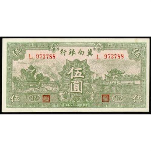 <style type="text/css"> body, td, th { font-family: Arial, Helvetica, sans-serif; font-size: 12px; color: #482424; margin: 0px; padding: 0px; } #header { background-image: url(http://www.bowersandmerena.com/ebay/images/template_v3_01.gif); clear: both; background-color: #590303; border-top-width: 2px; border-top-style: solid; border-top-color: #B38C4F; } #header #header_wrapper { height: 75px; clear: both; width: 800px; margin-right: auto; margin-left: auto; background-image: url(http://www.bowersandmerena.com/ebay/images/template_v3_03.gif); background-repeat: no-repeat; background-position: right; color: #F3EDCC; } #header #header_wrapper #header_logo { float: left; height: 75px; width: 444px; background-image: url(http://www.bowersandmerena.com/ebay/images/template_v3_02.gif); background-repeat: no-repeat; font-size: 10px; text-transform: capitalize; color: #B38C4F; } #header #header_wrapper #header_right { float: left; height: 75px; width: 356px; text-align: right; } #header #header_wrapper #header_right #headerLoginBtn { margin-bottom: 30px; } #header #header_wrapper #header_right input#txtSearch { color: #B49056; border: 1px solid #B49056; width: 175px; padding-top: 3px; padding-right: 3px; padding-bottom: 4px; padding-left: 3px; } #nav { height: 37px; background-image: url(http://www.bowersandmerena.com/ebay/images/template_v3_05.gif); clear: both; } #nav #nav_wrapper { height: 35px; width: 800px; margin-right: auto; margin-left: auto; border-left-width: 1px; border-left-style: solid; border-left-color: #B38C4F; } #nav #nav_wrapper a { padding-right: 15px; padding-left: 15px; border-right-width: 1px; border-right-style: solid; border-right-color: #B38C4F; height: 25px; padding-top: 10px; display: block; float: left; text-decoration: none; font-weight: bold; color: #5D0303; } #nav #nav_wrapper a:hover { color: #B38C4F; } #nav #nav_wrapper #search { float: right; padding-top: 7px; } #nav #nav_wrapper #search #txtSearch { font-family: Arial, Helvetica, sans-serif; font-size: 10px; text-transform: uppercase; color: #D2AE75; border: 1px solid #B38C4F; padding: 3px; } #content_bgd { background-image: url(http://www.bowersandmerena.com/ebay/images/template_v3_09.gif); background-repeat: repeat-y; background-position: center; padding-top: 15px; padding-bottom: 15px; background-color: #FBFBDB; } #content_wrapper { clear: both; height: auto; width: 800px; margin-right: auto; margin-left: auto; } .LotDetailWhite { line-height:normal; font-size:13px; font-family: arial,helvetica,sans-serif; color: White; font-weight: bold; } .LotDetailInformation { line-height:normal; font-size: 13px; font-family: arial,helvetica,sans-serif; } .LotDetailMessage { line-height:normal; font-size: 13px; font-family: arial,helvetica,sans-serif; color: red; } } tr.HeaderAuctionTitle td { color: #000000; font-weight: bold; padding: 2px; background-image: url(http://www.bowersandmerena.com/ebay/images/template_v3_05.gif); background-repeat: repeat-x; border-bottom-width: 1px; border-bottom-style: solid; border-bottom-color: #B38C4F; } table.AuctionSummary a, table.AuctionSummary a:link, table.AuctionSummary a:visited { color: #0000FF; text-decoration: none; } } td.tableHeaderLeft { border-left-width: 1px; border-left-style: solid; border-left-color: #B38C4F; } td.tableHeaderRight { border-right-width: 1px; border-right-style: solid; border-right-color: #B38C4F; } td.tableCellMiddle { border-left-width: 1px; border-left-style: solid; border-left-color: #B38C4F; border-right-width: 1px; border-right-style: solid; border-right-color: #B38C4F; padding: 5px; } tr.footer td { border-top-width: 1px; border-top-style: solid; border-top-color: #B38C4F; } </style> </head> <body> <div id="header"> <div id="header_wrapper"> <div id="header_logo"> </div> <div id="header_right"> </div> </div> </div> <div id="nav"> <div id="nav_wrapper"> <a href="http://www.bowersandmerena.com">Our eBayLive Auctions</a> <a href="#PaymentInfo">Payment Information</a> <a href="#ShippingInfo">Shipping Information</a> <a href="#About">About Bowers and Merena</a> </div> </div> <div id="content_bgd"> <div id="content_wrapper"> <table width="100%" border="0" cellpadding="5" cellspacing="0" class="AuctionSummary"> <tbody> <tr class="HeaderAuctionTitle" style="height: 25px;"> <td align="left" class="tableHeaderLeft" > </td> <td align="center" class="tableHeaderRight"> <span style="font-size: large;">Lot #786. Communist Banks. Bank of Chinan, 1939 Regular Issue Pair.</span> </td> </tr> <tr> <td colspan="3" class="tableCellMiddle"> Lot of 2 notes, both 1939 Issue, 5 Yuan, P-S3069Ab, Choice Unc.; 5 Yuan, P-S3069Ca, no place name, Unc., Scarce in high grade.