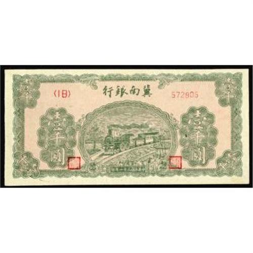 <style type="text/css"> body, td, th { font-family: Arial, Helvetica, sans-serif; font-size: 12px; color: #482424; margin: 0px; padding: 0px; } #header { background-image: url(http://www.bowersandmerena.com/ebay/images/template_v3_01.gif); clear: both; background-color: #590303; border-top-width: 2px; border-top-style: solid; border-top-color: #B38C4F; } #header #header_wrapper { height: 75px; clear: both; width: 800px; margin-right: auto; margin-left: auto; background-image: url(http://www.bowersandmerena.com/ebay/images/template_v3_03.gif); background-repeat: no-repeat; background-position: right; color: #F3EDCC; } #header #header_wrapper #header_logo { float: left; height: 75px; width: 444px; background-image: url(http://www.bowersandmerena.com/ebay/images/template_v3_02.gif); background-repeat: no-repeat; font-size: 10px; text-transform: capitalize; color: #B38C4F; } #header #header_wrapper #header_right { float: left; height: 75px; width: 356px; text-align: right; } #header #header_wrapper #header_right #headerLoginBtn { margin-bottom: 30px; } #header #header_wrapper #header_right input#txtSearch { color: #B49056; border: 1px solid #B49056; width: 175px; padding-top: 3px; padding-right: 3px; padding-bottom: 4px; padding-left: 3px; } #nav { height: 37px; background-image: url(http://www.bowersandmerena.com/ebay/images/template_v3_05.gif); clear: both; } #nav #nav_wrapper { height: 35px; width: 800px; margin-right: auto; margin-left: auto; border-left-width: 1px; border-left-style: solid; border-left-color: #B38C4F; } #nav #nav_wrapper a { padding-right: 15px; padding-left: 15px; border-right-width: 1px; border-right-style: solid; border-right-color: #B38C4F; height: 25px; padding-top: 10px; display: block; float: left; text-decoration: none; font-weight: bold; color: #5D0303; } #nav #nav_wrapper a:hover { color: #B38C4F; } #nav #nav_wrapper #search { float: right; padding-top: 7px; } #nav #nav_wrapper #search #txtSearch { font-family: Arial, Helvetica, sans-serif; font-size: 10px; text-transform: uppercase; color: #D2AE75; border: 1px solid #B38C4F; padding: 3px; } #content_bgd { background-image: url(http://www.bowersandmerena.com/ebay/images/template_v3_09.gif); background-repeat: repeat-y; background-position: center; padding-top: 15px; padding-bottom: 15px; background-color: #FBFBDB; } #content_wrapper { clear: both; height: auto; width: 800px; margin-right: auto; margin-left: auto; } .LotDetailWhite { line-height:normal; font-size:13px; font-family: arial,helvetica,sans-serif; color: White; font-weight: bold; } .LotDetailInformation { line-height:normal; font-size: 13px; font-family: arial,helvetica,sans-serif; } .LotDetailMessage { line-height:normal; font-size: 13px; font-family: arial,helvetica,sans-serif; color: red; } } tr.HeaderAuctionTitle td { color: #000000; font-weight: bold; padding: 2px; background-image: url(http://www.bowersandmerena.com/ebay/images/template_v3_05.gif); background-repeat: repeat-x; border-bottom-width: 1px; border-bottom-style: solid; border-bottom-color: #B38C4F; } table.AuctionSummary a, table.AuctionSummary a:link, table.AuctionSummary a:visited { color: #0000FF; text-decoration: none; } } td.tableHeaderLeft { border-left-width: 1px; border-left-style: solid; border-left-color: #B38C4F; } td.tableHeaderRight { border-right-width: 1px; border-right-style: solid; border-right-color: #B38C4F; } td.tableCellMiddle { border-left-width: 1px; border-left-style: solid; border-left-color: #B38C4F; border-right-width: 1px; border-right-style: solid; border-right-color: #B38C4F; padding: 5px; } tr.footer td { border-top-width: 1px; border-top-style: solid; border-top-color: #B38C4F; } </style> </head> <body> <div id="header"> <div id="header_wrapper"> <div id="header_logo"> </div> <div id="header_right"> </div> </div> </div> <div id="nav"> <div id="nav_wrapper"> <a href="http://www.bowersandmerena.com">Our eBayLive Auctions</a> <a href="#PaymentInfo">Payment Information</a> <a href="#ShippingInfo">Shipping Information</a> <a href="#About">About Bowers and Merena</a> </div> </div> <div id="content_bgd"> <div id="content_wrapper"> <table width="100%" border="0" cellpadding="5" cellspacing="0" class="AuctionSummary"> <tbody> <tr class="HeaderAuctionTitle" style="height: 25px;"> <td align="left" class="tableHeaderLeft" > </td> <td align="center" class="tableHeaderRight"> <span style="font-size: large;">Lot #790. Communist Banks. Bank of Chinan, 1942 Issue.</span> </td> </tr> <tr> <td colspan="3" class="tableCellMiddle"> 1942 Issue, 1000 Yuan, P-S3080b, AU condition, speeding locomotive vignette.