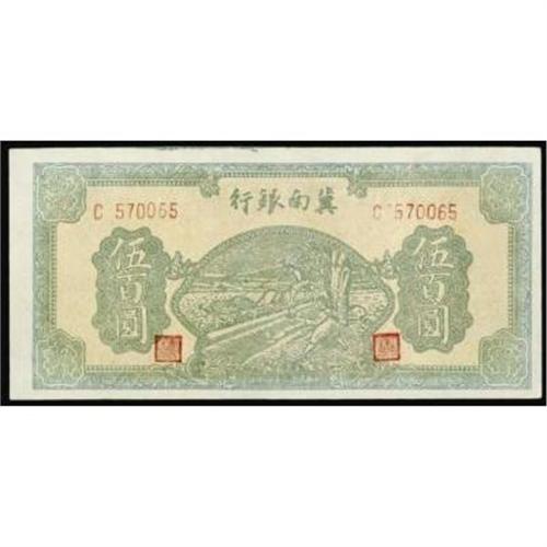 <style type="text/css"> body, td, th { font-family: Arial, Helvetica, sans-serif; font-size: 12px; color: #482424; margin: 0px; padding: 0px; } #header { background-image: url(http://www.bowersandmerena.com/ebay/images/template_v3_01.gif); clear: both; background-color: #590303; border-top-width: 2px; border-top-style: solid; border-top-color: #B38C4F; } #header #header_wrapper { height: 75px; clear: both; width: 800px; margin-right: auto; margin-left: auto; background-image: url(http://www.bowersandmerena.com/ebay/images/template_v3_03.gif); background-repeat: no-repeat; background-position: right; color: #F3EDCC; } #header #header_wrapper #header_logo { float: left; height: 75px; width: 444px; background-image: url(http://www.bowersandmerena.com/ebay/images/template_v3_02.gif); background-repeat: no-repeat; font-size: 10px; text-transform: capitalize; color: #B38C4F; } #header #header_wrapper #header_right { float: left; height: 75px; width: 356px; text-align: right; } #header #header_wrapper #header_right #headerLoginBtn { margin-bottom: 30px; } #header #header_wrapper #header_right input#txtSearch { color: #B49056; border: 1px solid #B49056; width: 175px; padding-top: 3px; padding-right: 3px; padding-bottom: 4px; padding-left: 3px; } #nav { height: 37px; background-image: url(http://www.bowersandmerena.com/ebay/images/template_v3_05.gif); clear: both; } #nav #nav_wrapper { height: 35px; width: 800px; margin-right: auto; margin-left: auto; border-left-width: 1px; border-left-style: solid; border-left-color: #B38C4F; } #nav #nav_wrapper a { padding-right: 15px; padding-left: 15px; border-right-width: 1px; border-right-style: solid; border-right-color: #B38C4F; height: 25px; padding-top: 10px; display: block; float: left; text-decoration: none; font-weight: bold; color: #5D0303; } #nav #nav_wrapper a:hover { color: #B38C4F; } #nav #nav_wrapper #search { float: right; padding-top: 7px; } #nav #nav_wrapper #search #txtSearch { font-family: Arial, Helvetica, sans-serif; font-size: 10px; text-transform: uppercase; color: #D2AE75; border: 1px solid #B38C4F; padding: 3px; } #content_bgd { background-image: url(http://www.bowersandmerena.com/ebay/images/template_v3_09.gif); background-repeat: repeat-y; background-position: center; padding-top: 15px; padding-bottom: 15px; background-color: #FBFBDB; } #content_wrapper { clear: both; height: auto; width: 800px; margin-right: auto; margin-left: auto; } .LotDetailWhite { line-height:normal; font-size:13px; font-family: arial,helvetica,sans-serif; color: White; font-weight: bold; } .LotDetailInformation { line-height:normal; font-size: 13px; font-family: arial,helvetica,sans-serif; } .LotDetailMessage { line-height:normal; font-size: 13px; font-family: arial,helvetica,sans-serif; color: red; } } tr.HeaderAuctionTitle td { color: #000000; font-weight: bold; padding: 2px; background-image: url(http://www.bowersandmerena.com/ebay/images/template_v3_05.gif); background-repeat: repeat-x; border-bottom-width: 1px; border-bottom-style: solid; border-bottom-color: #B38C4F; } table.AuctionSummary a, table.AuctionSummary a:link, table.AuctionSummary a:visited { color: #0000FF; text-decoration: none; } } td.tableHeaderLeft { border-left-width: 1px; border-left-style: solid; border-left-color: #B38C4F; } td.tableHeaderRight { border-right-width: 1px; border-right-style: solid; border-right-color: #B38C4F; } td.tableCellMiddle { border-left-width: 1px; border-left-style: solid; border-left-color: #B38C4F; border-right-width: 1px; border-right-style: solid; border-right-color: #B38C4F; padding: 5px; } tr.footer td { border-top-width: 1px; border-top-style: solid; border-top-color: #B38C4F; } </style> </head> <body> <div id="header"> <div id="header_wrapper"> <div id="header_logo"> </div> <div id="header_right"> </div> </div> </div> <div id="nav"> <div id="nav_wrapper"> <a href="http://www.bowersandmerena.com">Our eBayLive Auctions</a> <a href="#PaymentInfo">Payment Information</a> <a href="#ShippingInfo">Shipping Information</a> <a href="#About">About Bowers and Merena</a> </div> </div> <div id="content_bgd"> <div id="content_wrapper"> <table width="100%" border="0" cellpadding="5" cellspacing="0" class="AuctionSummary"> <tbody> <tr class="HeaderAuctionTitle" style="height: 25px;"> <td align="left" class="tableHeaderLeft" > </td> <td align="center" class="tableHeaderRight"> <span style="font-size: large;">Lot #791. Communist Banks. Bank of Chinan, 1945 and 1948 Issues.</span> </td> </tr> <tr> <td colspan="3" class="tableCellMiddle"> Lot of 3 notes, 2 are from the 1945 Issue, 100 Yuan, P-S3089a, white paper, VF with small tear on top margin and 500 Yuan, P-S3091b, AU condition; 1948, 500 Yuan, P-S3099, VF condition, scarce trio of notes.