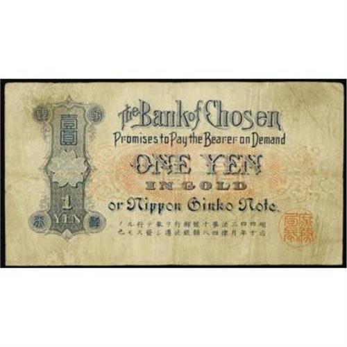 <style type="text/css"> body, td, th { font-family: Arial, Helvetica, sans-serif; font-size: 12px; color: #482424; margin: 0px; padding: 0px; } #header { background-image: url(http://www.bowersandmerena.com/ebay/images/template_v3_01.gif); clear: both; background-color: #590303; border-top-width: 2px; border-top-style: solid; border-top-color: #B38C4F; } #header #header_wrapper { height: 75px; clear: both; width: 800px; margin-right: auto; margin-left: auto; background-image: url(http://www.bowersandmerena.com/ebay/images/template_v3_03.gif); background-repeat: no-repeat; background-position: right; color: #F3EDCC; } #header #header_wrapper #header_logo { float: left; height: 75px; width: 444px; background-image: url(http://www.bowersandmerena.com/ebay/images/template_v3_02.gif); background-repeat: no-repeat; font-size: 10px; text-transform: capitalize; color: #B38C4F; } #header #header_wrapper #header_right { float: left; height: 75px; width: 356px; text-align: right; } #header #header_wrapper #header_right #headerLoginBtn { margin-bottom: 30px; } #header #header_wrapper #header_right input#txtSearch { color: #B49056; border: 1px solid #B49056; width: 175px; padding-top: 3px; padding-right: 3px; padding-bottom: 4px; padding-left: 3px; } #nav { height: 37px; background-image: url(http://www.bowersandmerena.com/ebay/images/template_v3_05.gif); clear: both; } #nav #nav_wrapper { height: 35px; width: 800px; margin-right: auto; margin-left: auto; border-left-width: 1px; border-left-style: solid; border-left-color: #B38C4F; } #nav #nav_wrapper a { padding-right: 15px; padding-left: 15px; border-right-width: 1px; border-right-style: solid; border-right-color: #B38C4F; height: 25px; padding-top: 10px; display: block; float: left; text-decoration: none; font-weight: bold; color: #5D0303; } #nav #nav_wrapper a:hover { color: #B38C4F; } #nav #nav_wrapper #search { float: right; padding-top: 7px; } #nav #nav_wrapper #search #txtSearch { font-family: Arial, Helvetica, sans-serif; font-size: 10px; text-transform: uppercase; color: #D2AE75; border: 1px solid #B38C4F; padding: 3px; } #content_bgd { background-image: url(http://www.bowersandmerena.com/ebay/images/template_v3_09.gif); background-repeat: repeat-y; background-position: center; padding-top: 15px; padding-bottom: 15px; background-color: #FBFBDB; } #content_wrapper { clear: both; height: auto; width: 800px; margin-right: auto; margin-left: auto; } .LotDetailWhite { line-height:normal; font-size:13px; font-family: arial,helvetica,sans-serif; color: White; font-weight: bold; } .LotDetailInformation { line-height:normal; font-size: 13px; font-family: arial,helvetica,sans-serif; } .LotDetailMessage { line-height:normal; font-size: 13px; font-family: arial,helvetica,sans-serif; color: red; } } tr.HeaderAuctionTitle td { color: #000000; font-weight: bold; padding: 2px; background-image: url(http://www.bowersandmerena.com/ebay/images/template_v3_05.gif); background-repeat: repeat-x; border-bottom-width: 1px; border-bottom-style: solid; border-bottom-color: #B38C4F; } table.AuctionSummary a, table.AuctionSummary a:link, table.AuctionSummary a:visited { color: #0000FF; text-decoration: none; } } td.tableHeaderLeft { border-left-width: 1px; border-left-style: solid; border-left-color: #B38C4F; } td.tableHeaderRight { border-right-width: 1px; border-right-style: solid; border-right-color: #B38C4F; } td.tableCellMiddle { border-left-width: 1px; border-left-style: solid; border-left-color: #B38C4F; border-right-width: 1px; border-right-style: solid; border-right-color: #B38C4F; padding: 5px; } tr.footer td { border-top-width: 1px; border-top-style: solid; border-top-color: #B38C4F; } </style> </head> <body> <div id="header"> <div id="header_wrapper"> <div id="header_logo"> </div> <div id="header_right"> </div> </div> </div> <div id="nav"> <div id="nav_wrapper"> <a href="http://www.bowersandmerena.com">Our eBayLive Auctions</a> <a href="#PaymentInfo">Payment Information</a> <a href="#ShippingInfo">Shipping Information</a> <a href="#About">About Bowers and Merena</a> </div> </div> <div id="content_bgd"> <div id="content_wrapper"> <table width="100%" border="0" cellpadding="5" cellspacing="0" class="AuctionSummary"> <tbody> <tr class="HeaderAuctionTitle" style="height: 25px;"> <td align="left" class="tableHeaderLeft" > </td> <td align="center" class="tableHeaderRight"> <span style="font-size: large;">Lot #1060. Korea. Bank of Chosen, 1911 (1915) Second Issue.</span> </td> </tr> <tr> <td colspan="3" class="tableCellMiddle"> Lot of 2 notes, 1911 (1915), 1 Yen in Gold, P-117a and P-17b, one with stylized Korean Serial #s and the other with Japanese style Serial #s, both in Fine to VF condition, attractive note variety pair.