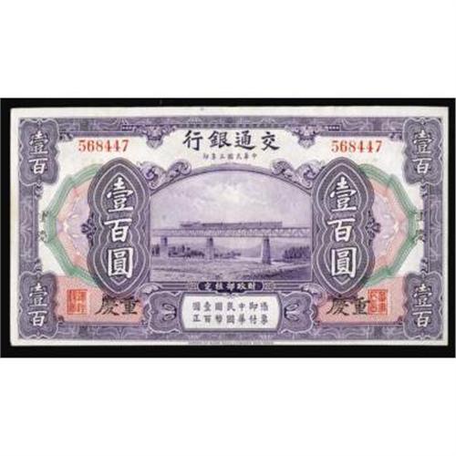 <style type="text/css"> body, td, th { font-family: Arial, Helvetica, sans-serif; font-size: 12px; color: #482424; margin: 0px; padding: 0px; } #header { background-image: url(http://www.bowersandmerena.com/ebay/images/template_v3_01.gif); clear: both; background-color: #590303; border-top-width: 2px; border-top-style: solid; border-top-color: #B38C4F; } #header #header_wrapper { height: 75px; clear: both; width: 800px; margin-right: auto; margin-left: auto; background-image: url(http://www.bowersandmerena.com/ebay/images/template_v3_03.gif); background-repeat: no-repeat; background-position: right; color: #F3EDCC; } #header #header_wrapper #header_logo { float: left; height: 75px; width: 444px; background-image: url(http://www.bowersandmerena.com/ebay/images/template_v3_02.gif); background-repeat: no-repeat; font-size: 10px; text-transform: capitalize; color: #B38C4F; } #header #header_wrapper #header_right { float: left; height: 75px; width: 356px; text-align: right; } #header #header_wrapper #header_right #headerLoginBtn { margin-bottom: 30px; } #header #header_wrapper #header_right input#txtSearch { color: #B49056; border: 1px solid #B49056; width: 175px; padding-top: 3px; padding-right: 3px; padding-bottom: 4px; padding-left: 3px; } #nav { height: 37px; background-image: url(http://www.bowersandmerena.com/ebay/images/template_v3_05.gif); clear: both; } #nav #nav_wrapper { height: 35px; width: 800px; margin-right: auto; margin-left: auto; border-left-width: 1px; border-left-style: solid; border-left-color: #B38C4F; } #nav #nav_wrapper a { padding-right: 15px; padding-left: 15px; border-right-width: 1px; border-right-style: solid; border-right-color: #B38C4F; height: 25px; padding-top: 10px; display: block; float: left; text-decoration: none; font-weight: bold; color: #5D0303; } #nav #nav_wrapper a:hover { color: #B38C4F; } #nav #nav_wrapper #search { float: right; padding-top: 7px; } #nav #nav_wrapper #search #txtSearch { font-family: Arial, Helvetica, sans-serif; font-size: 10px; text-transform: uppercase; color: #D2AE75; border: 1px solid #B38C4F; padding: 3px; } #content_bgd { background-image: url(http://www.bowersandmerena.com/ebay/images/template_v3_09.gif); background-repeat: repeat-y; background-position: center; padding-top: 15px; padding-bottom: 15px; background-color: #FBFBDB; } #content_wrapper { clear: both; height: auto; width: 800px; margin-right: auto; margin-left: auto; } .LotDetailWhite { line-height:normal; font-size:13px; font-family: arial,helvetica,sans-serif; color: White; font-weight: bold; } .LotDetailInformation { line-height:normal; font-size: 13px; font-family: arial,helvetica,sans-serif; } .LotDetailMessage { line-height:normal; font-size: 13px; font-family: arial,helvetica,sans-serif; color: red; } } tr.HeaderAuctionTitle td { color: #000000; font-weight: bold; padding: 2px; background-image: url(http://www.bowersandmerena.com/ebay/images/template_v3_05.gif); background-repeat: repeat-x; border-bottom-width: 1px; border-bottom-style: solid; border-bottom-color: #B38C4F; } table.AuctionSummary a, table.AuctionSummary a:link, table.AuctionSummary a:visited { color: #0000FF; text-decoration: none; } } td.tableHeaderLeft { border-left-width: 1px; border-left-style: solid; border-left-color: #B38C4F; } td.tableHeaderRight { border-right-width: 1px; border-right-style: solid; border-right-color: #B38C4F; } td.tableCellMiddle { border-left-width: 1px; border-left-style: solid; border-left-color: #B38C4F; border-right-width: 1px; border-right-style: solid; border-right-color: #B38C4F; padding: 5px; } tr.footer td { border-top-width: 1px; border-top-style: solid; border-top-color: #B38C4F; } </style> </head> <body> <div id="header"> <div id="header_wrapper"> <div id="header_logo"> </div> <div id="header_right"> </div> </div> </div> <div id="nav"> <div id="nav_wrapper"> <a href="http://www.bowersandmerena.com">Our eBayLive Auctions</a> <a href="#PaymentInfo">Payment Information</a> <a href="#ShippingInfo">Shipping Information</a> <a href="#About">About Bowers and Merena</a> </div> </div> <div id="content_bgd"> <div id="content_wrapper"> <table width="100%" border="0" cellpadding="5" cellspacing="0" class="AuctionSummary"> <tbody> <tr class="HeaderAuctionTitle" style="height: 25px;"> <td align="left" class="tableHeaderLeft" > </td> <td align="center" class="tableHeaderRight"> <span style="font-size: large;">Lot #109. China--Empire. Bank of Communications, 1914 Issue.</span> </td> </tr> <tr> <td colspan="3" class="tableCellMiddle"> Lot of 3 notes, Chungking, P-120a., 100 Yuan, AU+ to Unc. with no prefix on serial number; Chungking, P-120a., 100 Yuan, XF+ with prefix on serial number; Shanghai, P-120c., 100 Yuan, AU+ to Unc.