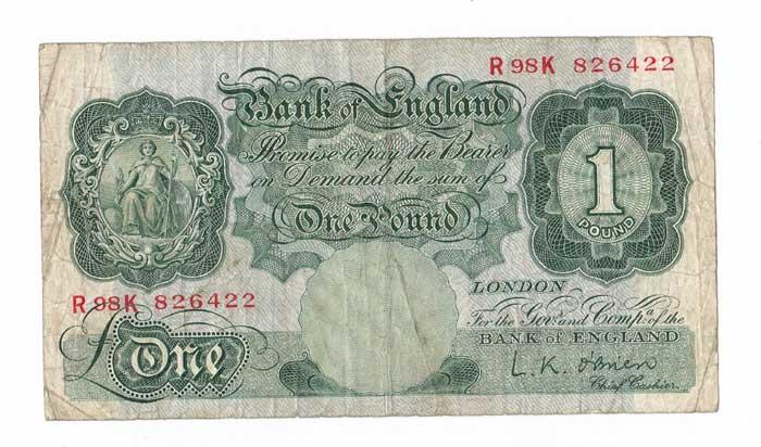 K/156 41183, Peppiatt, about very fine, also One Pound, O'Brien, R98K 826422, very good. (2 items)