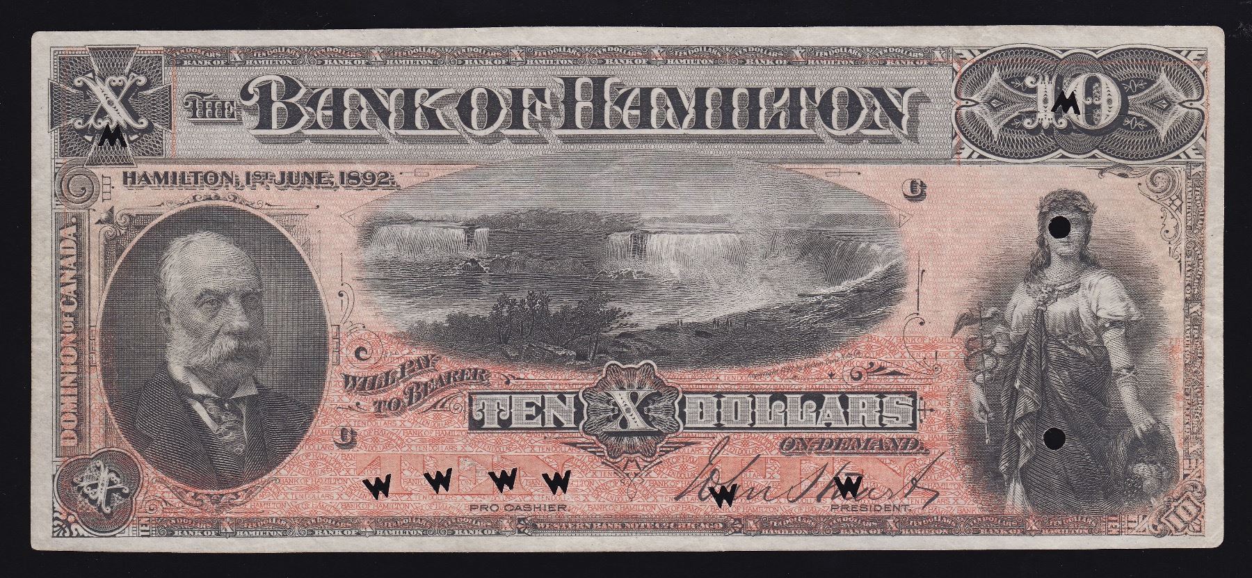 CH 345-16-04S. EF, Niagara Falls at center. Great looking specimen, left signature panel is punch cancelled.