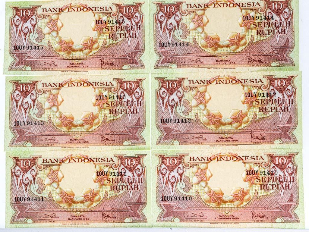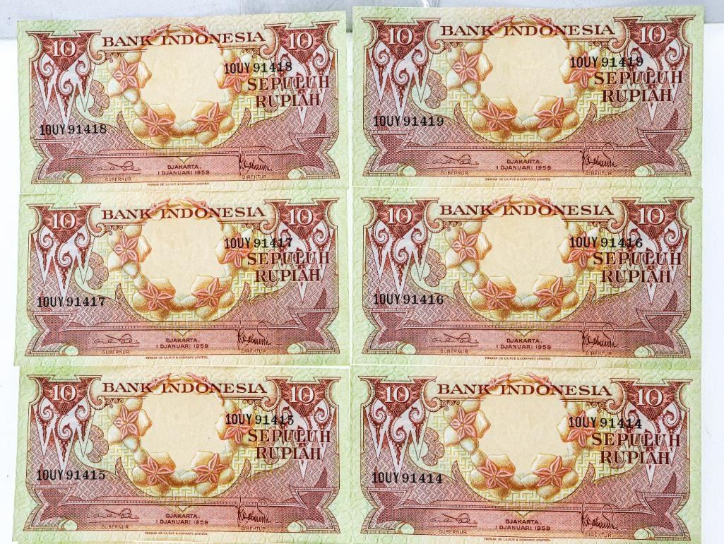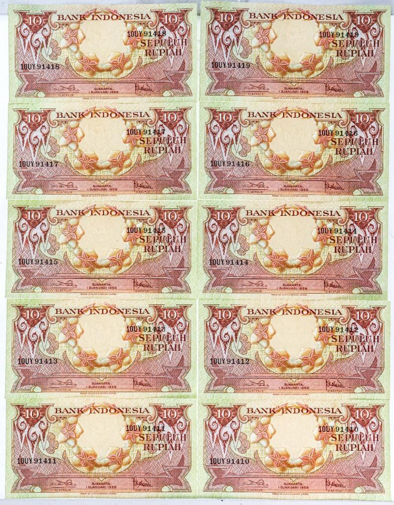 Bank of Indonesia 1959 - Lot 10 x 10Rupiah in Sequence UNC