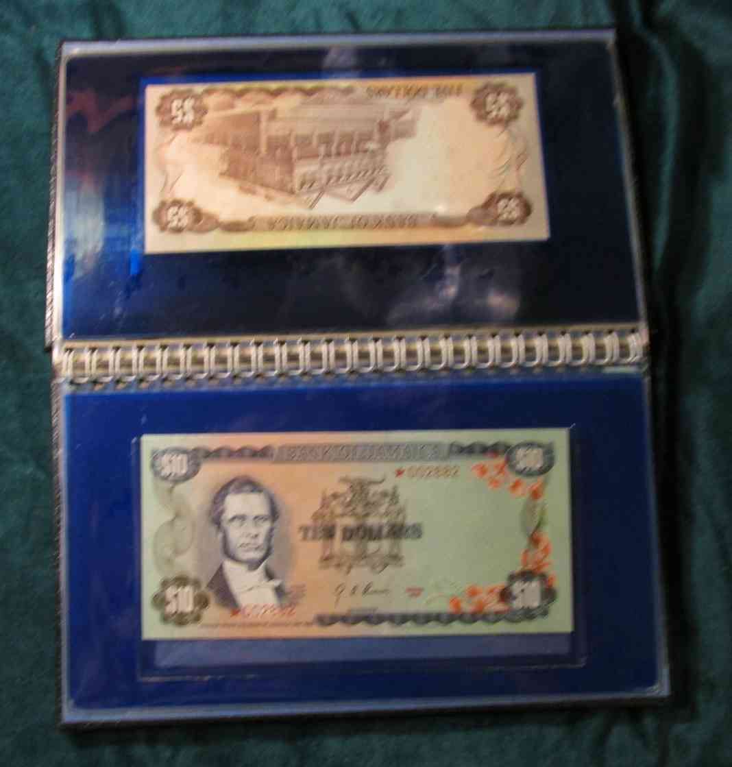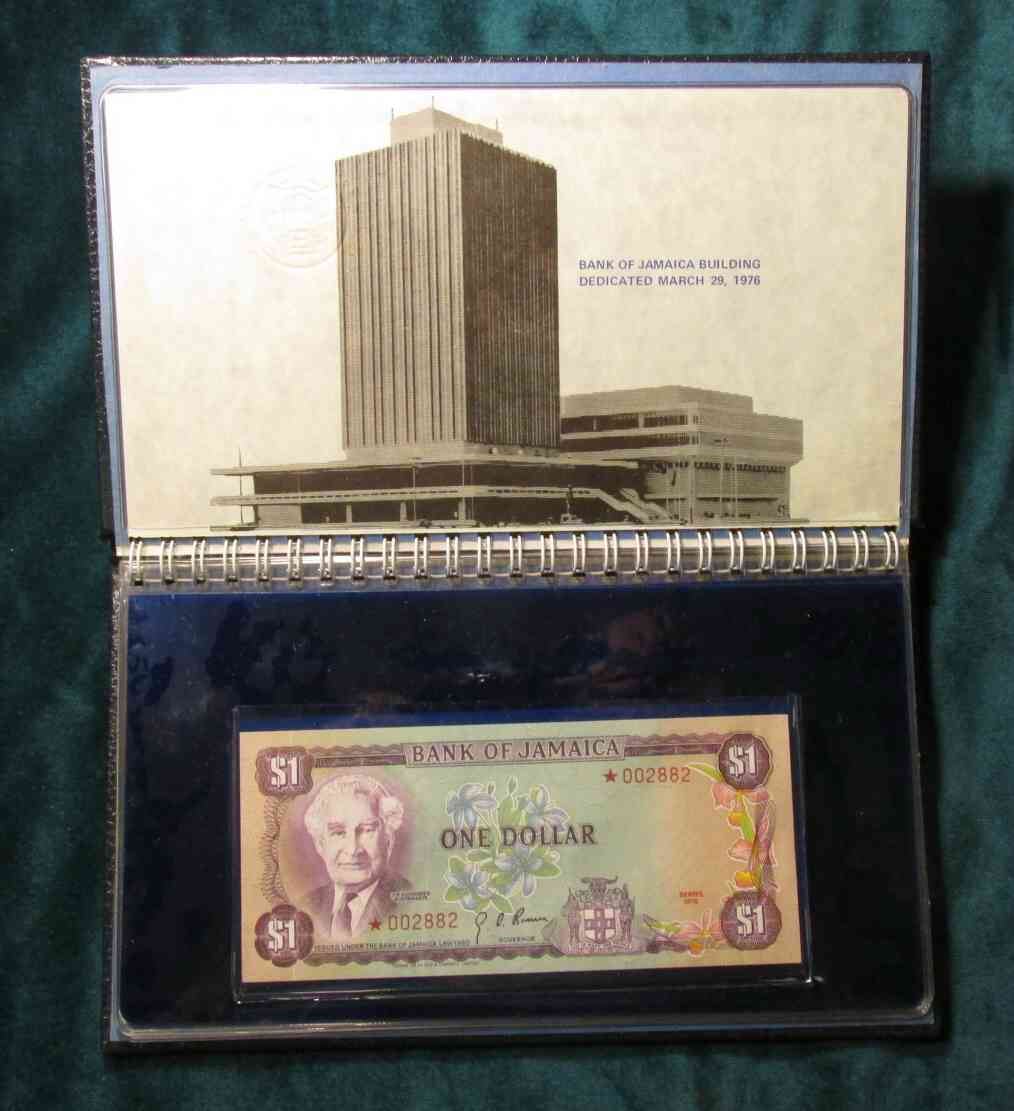 Bank of Jamaica Set of Four banknotes in a special holder. Serial Number 2882 of 5,000 sets. All with special Red serial number and Star. Series of 1976. CU.