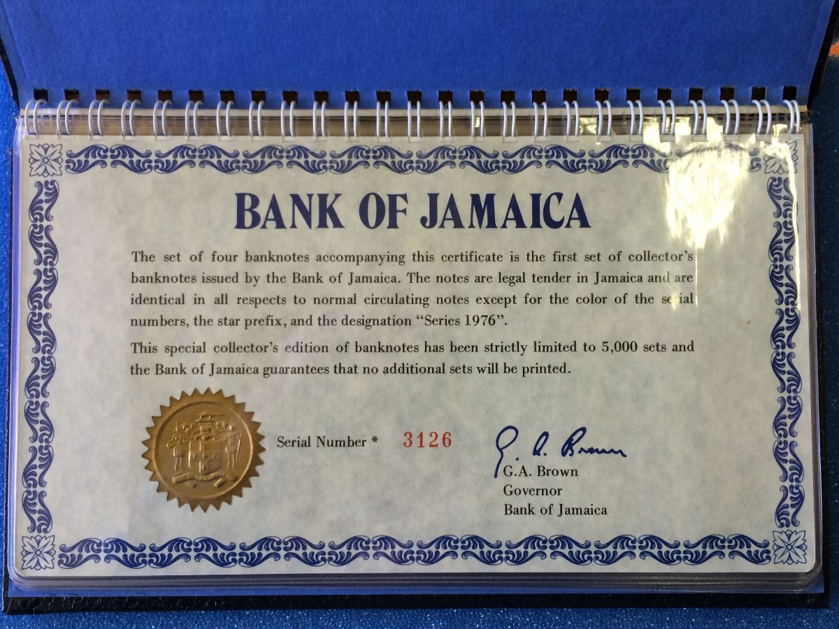 Bank of Jamaica set of 4 match set banknote, series 1976, limited edition 5000.
