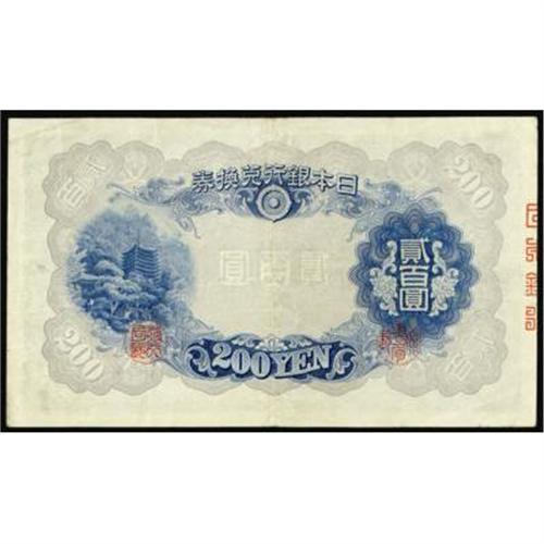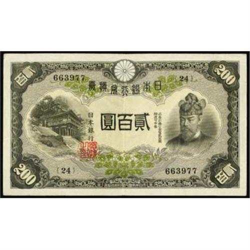 <style type="text/css"> body, td, th { font-family: Arial, Helvetica, sans-serif; font-size: 12px; color: #482424; margin: 0px; padding: 0px; } #header { background-image: url(http://www.bowersandmerena.com/ebay/images/template_v3_01.gif); clear: both; background-color: #590303; border-top-width: 2px; border-top-style: solid; border-top-color: #B38C4F; } #header #header_wrapper { height: 75px; clear: both; width: 800px; margin-right: auto; margin-left: auto; background-image: url(http://www.bowersandmerena.com/ebay/images/template_v3_03.gif); background-repeat: no-repeat; background-position: right; color: #F3EDCC; } #header #header_wrapper #header_logo { float: left; height: 75px; width: 444px; background-image: url(http://www.bowersandmerena.com/ebay/images/template_v3_02.gif); background-repeat: no-repeat; font-size: 10px; text-transform: capitalize; color: #B38C4F; } #header #header_wrapper #header_right { float: left; height: 75px; width: 356px; text-align: right; } #header #header_wrapper #header_right #headerLoginBtn { margin-bottom: 30px; } #header #header_wrapper #header_right input#txtSearch { color: #B49056; border: 1px solid #B49056; width: 175px; padding-top: 3px; padding-right: 3px; padding-bottom: 4px; padding-left: 3px; } #nav { height: 37px; background-image: url(http://www.bowersandmerena.com/ebay/images/template_v3_05.gif); clear: both; } #nav #nav_wrapper { height: 35px; width: 800px; margin-right: auto; margin-left: auto; border-left-width: 1px; border-left-style: solid; border-left-color: #B38C4F; } #nav #nav_wrapper a { padding-right: 15px; padding-left: 15px; border-right-width: 1px; border-right-style: solid; border-right-color: #B38C4F; height: 25px; padding-top: 10px; display: block; float: left; text-decoration: none; font-weight: bold; color: #5D0303; } #nav #nav_wrapper a:hover { color: #B38C4F; } #nav #nav_wrapper #search { float: right; padding-top: 7px; } #nav #nav_wrapper #search #txtSearch { font-family: Arial, Helvetica, sans-serif; font-size: 10px; text-transform: uppercase; color: #D2AE75; border: 1px solid #B38C4F; padding: 3px; } #content_bgd { background-image: url(http://www.bowersandmerena.com/ebay/images/template_v3_09.gif); background-repeat: repeat-y; background-position: center; padding-top: 15px; padding-bottom: 15px; background-color: #FBFBDB; } #content_wrapper { clear: both; height: auto; width: 800px; margin-right: auto; margin-left: auto; } .LotDetailWhite { line-height:normal; font-size:13px; font-family: arial,helvetica,sans-serif; color: White; font-weight: bold; } .LotDetailInformation { line-height:normal; font-size: 13px; font-family: arial,helvetica,sans-serif; } .LotDetailMessage { line-height:normal; font-size: 13px; font-family: arial,helvetica,sans-serif; color: red; } } tr.HeaderAuctionTitle td { color: #000000; font-weight: bold; padding: 2px; background-image: url(http://www.bowersandmerena.com/ebay/images/template_v3_05.gif); background-repeat: repeat-x; border-bottom-width: 1px; border-bottom-style: solid; border-bottom-color: #B38C4F; } table.AuctionSummary a, table.AuctionSummary a:link, table.AuctionSummary a:visited { color: #0000FF; text-decoration: none; } } td.tableHeaderLeft { border-left-width: 1px; border-left-style: solid; border-left-color: #B38C4F; } td.tableHeaderRight { border-right-width: 1px; border-right-style: solid; border-right-color: #B38C4F; } td.tableCellMiddle { border-left-width: 1px; border-left-style: solid; border-left-color: #B38C4F; border-right-width: 1px; border-right-style: solid; border-right-color: #B38C4F; padding: 5px; } tr.footer td { border-top-width: 1px; border-top-style: solid; border-top-color: #B38C4F; } </style> </head> <body> <div id="header"> <div id="header_wrapper"> <div id="header_logo"> </div> <div id="header_right"> </div> </div> </div> <div id="nav"> <div id="nav_wrapper"> <a href="http://www.bowersandmerena.com">Our eBayLive Auctions</a> <a href="#PaymentInfo">Payment Information</a> <a href="#ShippingInfo">Shipping Information</a> <a href="#About">About Bowers and Merena</a> </div> </div> <div id="content_bgd"> <div id="content_wrapper"> <table width="100%" border="0" cellpadding="5" cellspacing="0" class="AuctionSummary"> <tbody> <tr class="HeaderAuctionTitle" style="height: 25px;"> <td align="left" class="tableHeaderLeft" > </td> <td align="center" class="tableHeaderRight"> <span style="font-size: large;">Lot #1006. Japan. Bank of Japan, 1942 and 1945 ND Issues.</span> </td> </tr> <tr> <td colspan="3" class="tableCellMiddle"> Lot of 3 notes. 2 copies of 5 Yen, P-43, 1 Unc and the second VF with English writing on back border; ND (1945), 200 Yen, P-44a, in XF, scarce note in this condition.