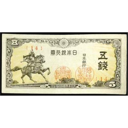 <style type="text/css"> body, td, th { font-family: Arial, Helvetica, sans-serif; font-size: 12px; color: #482424; margin: 0px; padding: 0px; } #header { background-image: url(http://www.bowersandmerena.com/ebay/images/template_v3_01.gif); clear: both; background-color: #590303; border-top-width: 2px; border-top-style: solid; border-top-color: #B38C4F; } #header #header_wrapper { height: 75px; clear: both; width: 800px; margin-right: auto; margin-left: auto; background-image: url(http://www.bowersandmerena.com/ebay/images/template_v3_03.gif); background-repeat: no-repeat; background-position: right; color: #F3EDCC; } #header #header_wrapper #header_logo { float: left; height: 75px; width: 444px; background-image: url(http://www.bowersandmerena.com/ebay/images/template_v3_02.gif); background-repeat: no-repeat; font-size: 10px; text-transform: capitalize; color: #B38C4F; } #header #header_wrapper #header_right { float: left; height: 75px; width: 356px; text-align: right; } #header #header_wrapper #header_right #headerLoginBtn { margin-bottom: 30px; } #header #header_wrapper #header_right input#txtSearch { color: #B49056; border: 1px solid #B49056; width: 175px; padding-top: 3px; padding-right: 3px; padding-bottom: 4px; padding-left: 3px; } #nav { height: 37px; background-image: url(http://www.bowersandmerena.com/ebay/images/template_v3_05.gif); clear: both; } #nav #nav_wrapper { height: 35px; width: 800px; margin-right: auto; margin-left: auto; border-left-width: 1px; border-left-style: solid; border-left-color: #B38C4F; } #nav #nav_wrapper a { padding-right: 15px; padding-left: 15px; border-right-width: 1px; border-right-style: solid; border-right-color: #B38C4F; height: 25px; padding-top: 10px; display: block; float: left; text-decoration: none; font-weight: bold; color: #5D0303; } #nav #nav_wrapper a:hover { color: #B38C4F; } #nav #nav_wrapper #search { float: right; padding-top: 7px; } #nav #nav_wrapper #search #txtSearch { font-family: Arial, Helvetica, sans-serif; font-size: 10px; text-transform: uppercase; color: #D2AE75; border: 1px solid #B38C4F; padding: 3px; } #content_bgd { background-image: url(http://www.bowersandmerena.com/ebay/images/template_v3_09.gif); background-repeat: repeat-y; background-position: center; padding-top: 15px; padding-bottom: 15px; background-color: #FBFBDB; } #content_wrapper { clear: both; height: auto; width: 800px; margin-right: auto; margin-left: auto; } .LotDetailWhite { line-height:normal; font-size:13px; font-family: arial,helvetica,sans-serif; color: White; font-weight: bold; } .LotDetailInformation { line-height:normal; font-size: 13px; font-family: arial,helvetica,sans-serif; } .LotDetailMessage { line-height:normal; font-size: 13px; font-family: arial,helvetica,sans-serif; color: red; } } tr.HeaderAuctionTitle td { color: #000000; font-weight: bold; padding: 2px; background-image: url(http://www.bowersandmerena.com/ebay/images/template_v3_05.gif); background-repeat: repeat-x; border-bottom-width: 1px; border-bottom-style: solid; border-bottom-color: #B38C4F; } table.AuctionSummary a, table.AuctionSummary a:link, table.AuctionSummary a:visited { color: #0000FF; text-decoration: none; } } td.tableHeaderLeft { border-left-width: 1px; border-left-style: solid; border-left-color: #B38C4F; } td.tableHeaderRight { border-right-width: 1px; border-right-style: solid; border-right-color: #B38C4F; } td.tableCellMiddle { border-left-width: 1px; border-left-style: solid; border-left-color: #B38C4F; border-right-width: 1px; border-right-style: solid; border-right-color: #B38C4F; padding: 5px; } tr.footer td { border-top-width: 1px; border-top-style: solid; border-top-color: #B38C4F; } </style> </head> <body> <div id="header"> <div id="header_wrapper"> <div id="header_logo"> </div> <div id="header_right"> </div> </div> </div> <div id="nav"> <div id="nav_wrapper"> <a href="http://www.bowersandmerena.com">Our eBayLive Auctions</a> <a href="#PaymentInfo">Payment Information</a> <a href="#ShippingInfo">Shipping Information</a> <a href="#About">About Bowers and Merena</a> </div> </div> <div id="content_bgd"> <div id="content_wrapper"> <table width="100%" border="0" cellpadding="5" cellspacing="0" class="AuctionSummary"> <tbody> <tr class="HeaderAuctionTitle" style="height: 25px;"> <td align="left" class="tableHeaderLeft" > </td> <td align="center" class="tableHeaderRight"> <span style="font-size: large;">Lot #1045. Japan. Bank of Japan, 1944 ND Issue.</span> </td> </tr> <tr> <td colspan="3" class="tableCellMiddle"> Lot of 28 notes, all 1944 ND Issues. Lot includes 14 examples of the 5 Sen, P-52a, All in AU to CU with every block number from #1 to #14 present, difficult to assemble; 14 examples of the 10 Sen, P-53a, mostly in AU to CU with a couple in VF with almost every block number from #1 to #19 present, difficult to assemble; 5 Yen, P-50a, CU; 5 examples of the 10 Yen, P-51a, various conditions from VF to Choice Unc.