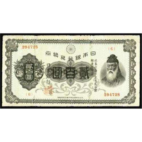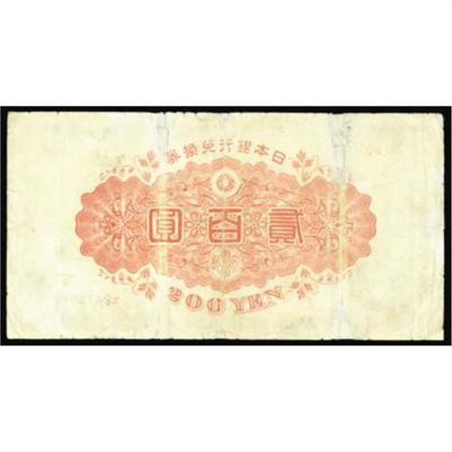 <style type="text/css"> body, td, th { font-family: Arial, Helvetica, sans-serif; font-size: 12px; color: #482424; margin: 0px; padding: 0px; } #header { background-image: url(http://www.bowersandmerena.com/ebay/images/template_v3_01.gif); clear: both; background-color: #590303; border-top-width: 2px; border-top-style: solid; border-top-color: #B38C4F; } #header #header_wrapper { height: 75px; clear: both; width: 800px; margin-right: auto; margin-left: auto; background-image: url(http://www.bowersandmerena.com/ebay/images/template_v3_03.gif); background-repeat: no-repeat; background-position: right; color: #F3EDCC; } #header #header_wrapper #header_logo { float: left; height: 75px; width: 444px; background-image: url(http://www.bowersandmerena.com/ebay/images/template_v3_02.gif); background-repeat: no-repeat; font-size: 10px; text-transform: capitalize; color: #B38C4F; } #header #header_wrapper #header_right { float: left; height: 75px; width: 356px; text-align: right; } #header #header_wrapper #header_right #headerLoginBtn { margin-bottom: 30px; } #header #header_wrapper #header_right input#txtSearch { color: #B49056; border: 1px solid #B49056; width: 175px; padding-top: 3px; padding-right: 3px; padding-bottom: 4px; padding-left: 3px; } #nav { height: 37px; background-image: url(http://www.bowersandmerena.com/ebay/images/template_v3_05.gif); clear: both; } #nav #nav_wrapper { height: 35px; width: 800px; margin-right: auto; margin-left: auto; border-left-width: 1px; border-left-style: solid; border-left-color: #B38C4F; } #nav #nav_wrapper a { padding-right: 15px; padding-left: 15px; border-right-width: 1px; border-right-style: solid; border-right-color: #B38C4F; height: 25px; padding-top: 10px; display: block; float: left; text-decoration: none; font-weight: bold; color: #5D0303; } #nav #nav_wrapper a:hover { color: #B38C4F; } #nav #nav_wrapper #search { float: right; padding-top: 7px; } #nav #nav_wrapper #search #txtSearch { font-family: Arial, Helvetica, sans-serif; font-size: 10px; text-transform: uppercase; color: #D2AE75; border: 1px solid #B38C4F; padding: 3px; } #content_bgd { background-image: url(http://www.bowersandmerena.com/ebay/images/template_v3_09.gif); background-repeat: repeat-y; background-position: center; padding-top: 15px; padding-bottom: 15px; background-color: #FBFBDB; } #content_wrapper { clear: both; height: auto; width: 800px; margin-right: auto; margin-left: auto; } .LotDetailWhite { line-height:normal; font-size:13px; font-family: arial,helvetica,sans-serif; color: White; font-weight: bold; } .LotDetailInformation { line-height:normal; font-size: 13px; font-family: arial,helvetica,sans-serif; } .LotDetailMessage { line-height:normal; font-size: 13px; font-family: arial,helvetica,sans-serif; color: red; } } tr.HeaderAuctionTitle td { color: #000000; font-weight: bold; padding: 2px; background-image: url(http://www.bowersandmerena.com/ebay/images/template_v3_05.gif); background-repeat: repeat-x; border-bottom-width: 1px; border-bottom-style: solid; border-bottom-color: #B38C4F; } table.AuctionSummary a, table.AuctionSummary a:link, table.AuctionSummary a:visited { color: #0000FF; text-decoration: none; } } td.tableHeaderLeft { border-left-width: 1px; border-left-style: solid; border-left-color: #B38C4F; } td.tableHeaderRight { border-right-width: 1px; border-right-style: solid; border-right-color: #B38C4F; } td.tableCellMiddle { border-left-width: 1px; border-left-style: solid; border-left-color: #B38C4F; border-right-width: 1px; border-right-style: solid; border-right-color: #B38C4F; padding: 5px; } tr.footer td { border-top-width: 1px; border-top-style: solid; border-top-color: #B38C4F; } </style> </head> <body> <div id="header"> <div id="header_wrapper"> <div id="header_logo"> </div> <div id="header_right"> </div> </div> </div> <div id="nav"> <div id="nav_wrapper"> <a href="http://www.bowersandmerena.com">Our eBayLive Auctions</a> <a href="#PaymentInfo">Payment Information</a> <a href="#ShippingInfo">Shipping Information</a> <a href="#About">About Bowers and Merena</a> </div> </div> <div id="content_bgd"> <div id="content_wrapper"> <table width="100%" border="0" cellpadding="5" cellspacing="0" class="AuctionSummary"> <tbody> <tr class="HeaderAuctionTitle" style="height: 25px;"> <td align="left" class="tableHeaderLeft" > </td> <td align="center" class="tableHeaderRight"> <span style="font-size: large;">Lot #1007. Japan. Bank of Japan, 1945 ND Issues.</span> </td> </tr> <tr> <td colspan="3" class="tableCellMiddle"> ND (1945), 200 Yen, P-43A, note appears in VF to VF+ condition, but the note has been repaired at the vertical folds near the top and bottom of the note where the note has been worn away and had started to split, still an amazing note in any form and condition.