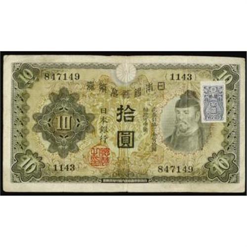 <style type="text/css"> body, td, th { font-family: Arial, Helvetica, sans-serif; font-size: 12px; color: #482424; margin: 0px; padding: 0px; } #header { background-image: url(http://www.bowersandmerena.com/ebay/images/template_v3_01.gif); clear: both; background-color: #590303; border-top-width: 2px; border-top-style: solid; border-top-color: #B38C4F; } #header #header_wrapper { height: 75px; clear: both; width: 800px; margin-right: auto; margin-left: auto; background-image: url(http://www.bowersandmerena.com/ebay/images/template_v3_03.gif); background-repeat: no-repeat; background-position: right; color: #F3EDCC; } #header #header_wrapper #header_logo { float: left; height: 75px; width: 444px; background-image: url(http://www.bowersandmerena.com/ebay/images/template_v3_02.gif); background-repeat: no-repeat; font-size: 10px; text-transform: capitalize; color: #B38C4F; } #header #header_wrapper #header_right { float: left; height: 75px; width: 356px; text-align: right; } #header #header_wrapper #header_right #headerLoginBtn { margin-bottom: 30px; } #header #header_wrapper #header_right input#txtSearch { color: #B49056; border: 1px solid #B49056; width: 175px; padding-top: 3px; padding-right: 3px; padding-bottom: 4px; padding-left: 3px; } #nav { height: 37px; background-image: url(http://www.bowersandmerena.com/ebay/images/template_v3_05.gif); clear: both; } #nav #nav_wrapper { height: 35px; width: 800px; margin-right: auto; margin-left: auto; border-left-width: 1px; border-left-style: solid; border-left-color: #B38C4F; } #nav #nav_wrapper a { padding-right: 15px; padding-left: 15px; border-right-width: 1px; border-right-style: solid; border-right-color: #B38C4F; height: 25px; padding-top: 10px; display: block; float: left; text-decoration: none; font-weight: bold; color: #5D0303; } #nav #nav_wrapper a:hover { color: #B38C4F; } #nav #nav_wrapper #search { float: right; padding-top: 7px; } #nav #nav_wrapper #search #txtSearch { font-family: Arial, Helvetica, sans-serif; font-size: 10px; text-transform: uppercase; color: #D2AE75; border: 1px solid #B38C4F; padding: 3px; } #content_bgd { background-image: url(http://www.bowersandmerena.com/ebay/images/template_v3_09.gif); background-repeat: repeat-y; background-position: center; padding-top: 15px; padding-bottom: 15px; background-color: #FBFBDB; } #content_wrapper { clear: both; height: auto; width: 800px; margin-right: auto; margin-left: auto; } .LotDetailWhite { line-height:normal; font-size:13px; font-family: arial,helvetica,sans-serif; color: White; font-weight: bold; } .LotDetailInformation { line-height:normal; font-size: 13px; font-family: arial,helvetica,sans-serif; } .LotDetailMessage { line-height:normal; font-size: 13px; font-family: arial,helvetica,sans-serif; color: red; } } tr.HeaderAuctionTitle td { color: #000000; font-weight: bold; padding: 2px; background-image: url(http://www.bowersandmerena.com/ebay/images/template_v3_05.gif); background-repeat: repeat-x; border-bottom-width: 1px; border-bottom-style: solid; border-bottom-color: #B38C4F; } table.AuctionSummary a, table.AuctionSummary a:link, table.AuctionSummary a:visited { color: #0000FF; text-decoration: none; } } td.tableHeaderLeft { border-left-width: 1px; border-left-style: solid; border-left-color: #B38C4F; } td.tableHeaderRight { border-right-width: 1px; border-right-style: solid; border-right-color: #B38C4F; } td.tableCellMiddle { border-left-width: 1px; border-left-style: solid; border-left-color: #B38C4F; border-right-width: 1px; border-right-style: solid; border-right-color: #B38C4F; padding: 5px; } tr.footer td { border-top-width: 1px; border-top-style: solid; border-top-color: #B38C4F; } </style> </head> <body> <div id="header"> <div id="header_wrapper"> <div id="header_logo"> </div> <div id="header_right"> </div> </div> </div> <div id="nav"> <div id="nav_wrapper"> <a href="http://www.bowersandmerena.com">Our eBayLive Auctions</a> <a href="#PaymentInfo">Payment Information</a> <a href="#ShippingInfo">Shipping Information</a> <a href="#About">About Bowers and Merena</a> </div> </div> <div id="content_bgd"> <div id="content_wrapper"> <table width="100%" border="0" cellpadding="5" cellspacing="0" class="AuctionSummary"> <tbody> <tr class="HeaderAuctionTitle" style="height: 25px;"> <td align="left" class="tableHeaderLeft" > </td> <td align="center" class="tableHeaderRight"> <span style="font-size: large;">Lot #1052. Japan. Bank of Japan (Continued), 1946 Provisional Issue.</span> </td> </tr> <tr> <td colspan="3" class="tableCellMiddle"> Lot of 8 different notes. All 10 Yen P-79 varieties including p-79a (2 copies); P-79b, (1 copy); P-79c, (1 copy) and 4 different counterfeit P-79b and P-79c (counterfeit stamps attached to notes).