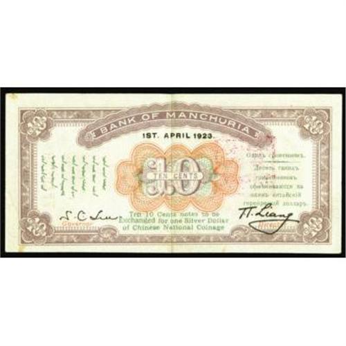 <style type="text/css"> body, td, th { font-family: Arial, Helvetica, sans-serif; font-size: 12px; color: #482424; margin: 0px; padding: 0px; } #header { background-image: url(http://www.bowersandmerena.com/ebay/images/template_v3_01.gif); clear: both; background-color: #590303; border-top-width: 2px; border-top-style: solid; border-top-color: #B38C4F; } #header #header_wrapper { height: 75px; clear: both; width: 800px; margin-right: auto; margin-left: auto; background-image: url(http://www.bowersandmerena.com/ebay/images/template_v3_03.gif); background-repeat: no-repeat; background-position: right; color: #F3EDCC; } #header #header_wrapper #header_logo { float: left; height: 75px; width: 444px; background-image: url(http://www.bowersandmerena.com/ebay/images/template_v3_02.gif); background-repeat: no-repeat; font-size: 10px; text-transform: capitalize; color: #B38C4F; } #header #header_wrapper #header_right { float: left; height: 75px; width: 356px; text-align: right; } #header #header_wrapper #header_right #headerLoginBtn { margin-bottom: 30px; } #header #header_wrapper #header_right input#txtSearch { color: #B49056; border: 1px solid #B49056; width: 175px; padding-top: 3px; padding-right: 3px; padding-bottom: 4px; padding-left: 3px; } #nav { height: 37px; background-image: url(http://www.bowersandmerena.com/ebay/images/template_v3_05.gif); clear: both; } #nav #nav_wrapper { height: 35px; width: 800px; margin-right: auto; margin-left: auto; border-left-width: 1px; border-left-style: solid; border-left-color: #B38C4F; } #nav #nav_wrapper a { padding-right: 15px; padding-left: 15px; border-right-width: 1px; border-right-style: solid; border-right-color: #B38C4F; height: 25px; padding-top: 10px; display: block; float: left; text-decoration: none; font-weight: bold; color: #5D0303; } #nav #nav_wrapper a:hover { color: #B38C4F; } #nav #nav_wrapper #search { float: right; padding-top: 7px; } #nav #nav_wrapper #search #txtSearch { font-family: Arial, Helvetica, sans-serif; font-size: 10px; text-transform: uppercase; color: #D2AE75; border: 1px solid #B38C4F; padding: 3px; } #content_bgd { background-image: url(http://www.bowersandmerena.com/ebay/images/template_v3_09.gif); background-repeat: repeat-y; background-position: center; padding-top: 15px; padding-bottom: 15px; background-color: #FBFBDB; } #content_wrapper { clear: both; height: auto; width: 800px; margin-right: auto; margin-left: auto; } .LotDetailWhite { line-height:normal; font-size:13px; font-family: arial,helvetica,sans-serif; color: White; font-weight: bold; } .LotDetailInformation { line-height:normal; font-size: 13px; font-family: arial,helvetica,sans-serif; } .LotDetailMessage { line-height:normal; font-size: 13px; font-family: arial,helvetica,sans-serif; color: red; } } tr.HeaderAuctionTitle td { color: #000000; font-weight: bold; padding: 2px; background-image: url(http://www.bowersandmerena.com/ebay/images/template_v3_05.gif); background-repeat: repeat-x; border-bottom-width: 1px; border-bottom-style: solid; border-bottom-color: #B38C4F; } table.AuctionSummary a, table.AuctionSummary a:link, table.AuctionSummary a:visited { color: #0000FF; text-decoration: none; } } td.tableHeaderLeft { border-left-width: 1px; border-left-style: solid; border-left-color: #B38C4F; } td.tableHeaderRight { border-right-width: 1px; border-right-style: solid; border-right-color: #B38C4F; } td.tableCellMiddle { border-left-width: 1px; border-left-style: solid; border-left-color: #B38C4F; border-right-width: 1px; border-right-style: solid; border-right-color: #B38C4F; padding: 5px; } tr.footer td { border-top-width: 1px; border-top-style: solid; border-top-color: #B38C4F; } </style> </head> <body> <div id="header"> <div id="header_wrapper"> <div id="header_logo"> </div> <div id="header_right"> </div> </div> </div> <div id="nav"> <div id="nav_wrapper"> <a href="http://www.bowersandmerena.com">Our eBayLive Auctions</a> <a href="#PaymentInfo">Payment Information</a> <a href="#ShippingInfo">Shipping Information</a> <a href="#About">About Bowers and Merena</a> </div> </div> <div id="content_bgd"> <div id="content_wrapper"> <table width="100%" border="0" cellpadding="5" cellspacing="0" class="AuctionSummary"> <tbody> <tr class="HeaderAuctionTitle" style="height: 25px;"> <td align="left" class="tableHeaderLeft" > </td> <td align="center" class="tableHeaderRight"> <span style="font-size: large;">Lot #752. Provincial Banks. Bank of Manchuria.</span> </td> </tr> <tr> <td colspan="3" class="tableCellMiddle"> 1923 Issues. 10 cents, P-S2941b., official Chinese 4 character overprint on face, AU, rare note in high grade.