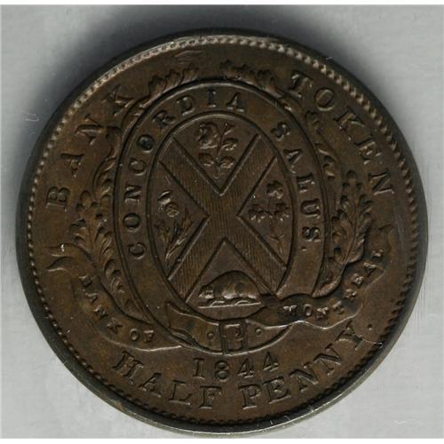 Bank of Montreal Halfpenny token 1844,, Br-527, Ch-PC1B