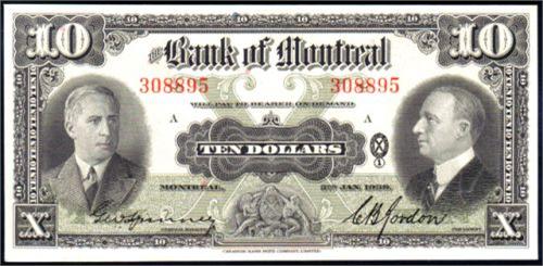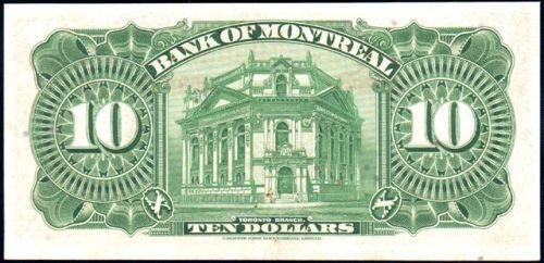 Bank of Montreal, Ten Dollars 1938, CH 505-62-04 Serial Number 308895 A. A bright, crisp and clean well-centered note, Choice AU-Uncirculated