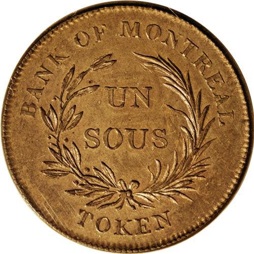 <B>Bank of Montreal Un Sous Token ND (1836),</B></I> BR-714, CH-LC3A3, MS60 Plated ICCS. Sharply struck with a lustrous appearance.