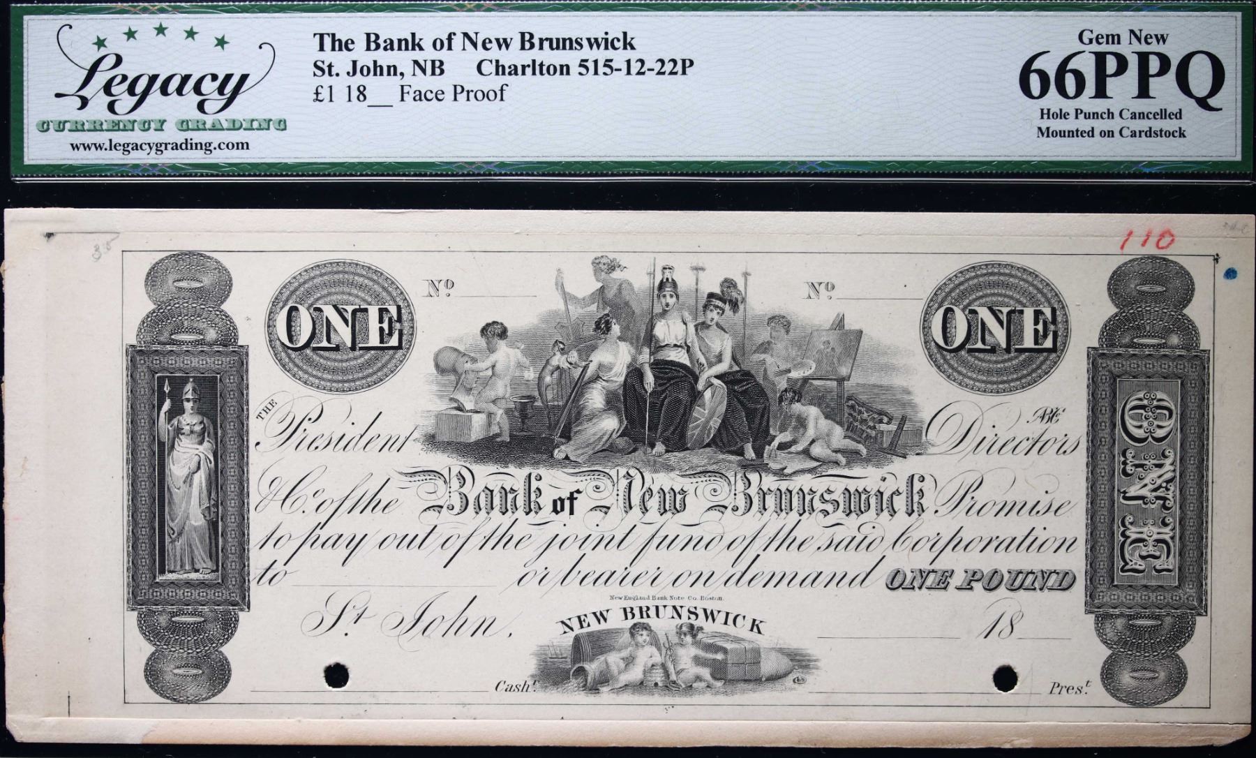 Bank of New Brunswick 18-- 1 POUND 515-12-22FP 'FACE PROOF' # LCG Superb Gem Uncirculated-66PPQ