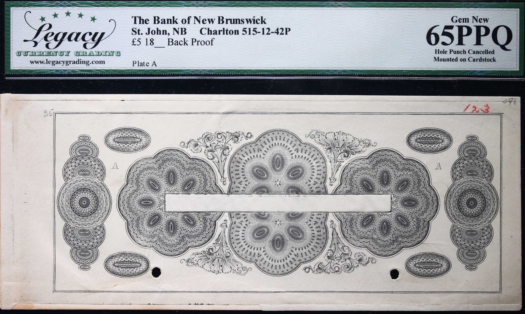 Bank of New Brunswick 18-- 5 POUNDS 515-12-42BP 'BACK PROOF' # LCG Gem Uncirculated-65PPQ