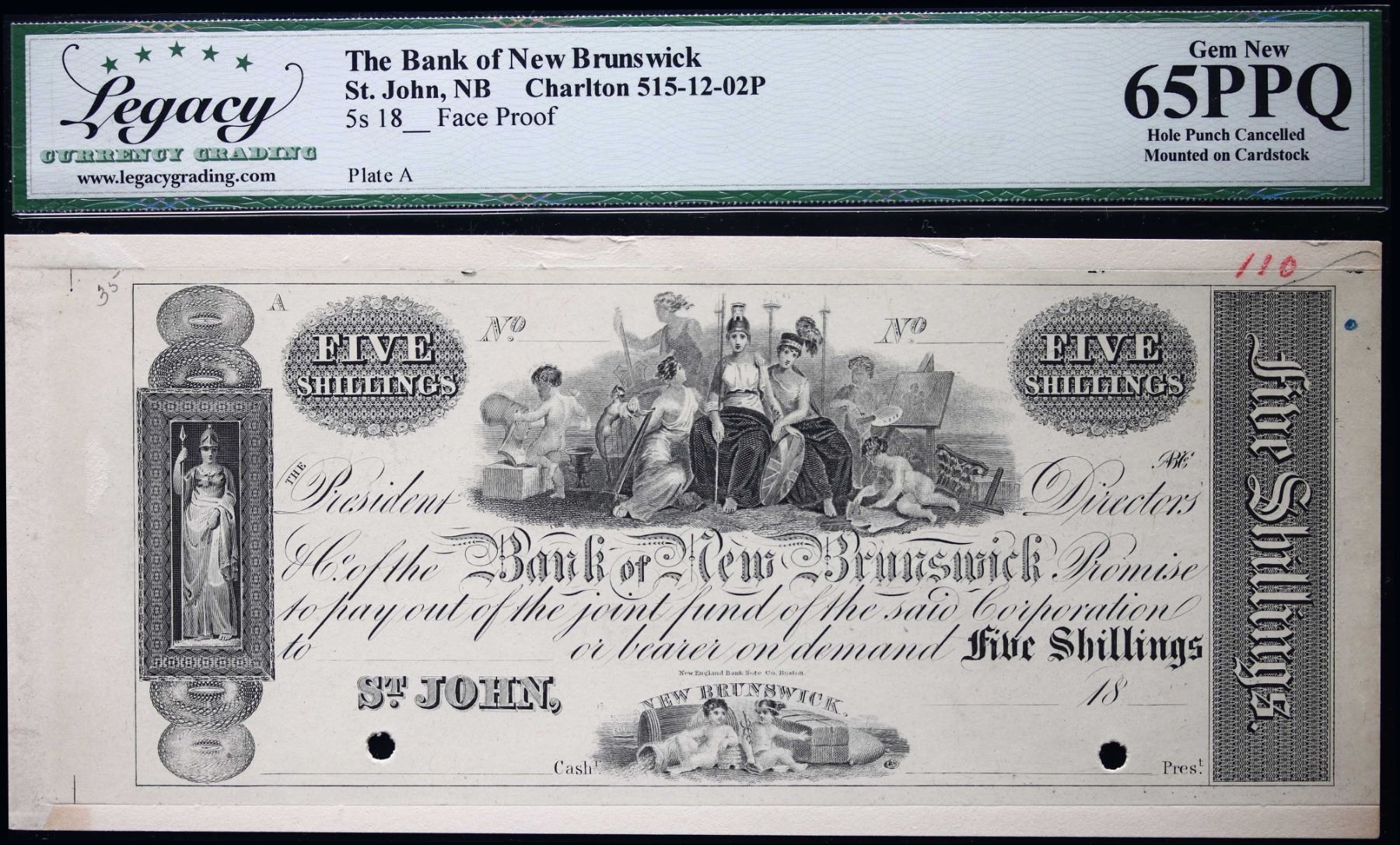 Bank of New Brunswick 18-- 5 SHILLINGS 515-12-02FP 'FACE PROOF' # LCG Gem Uncirculated-65PPQ