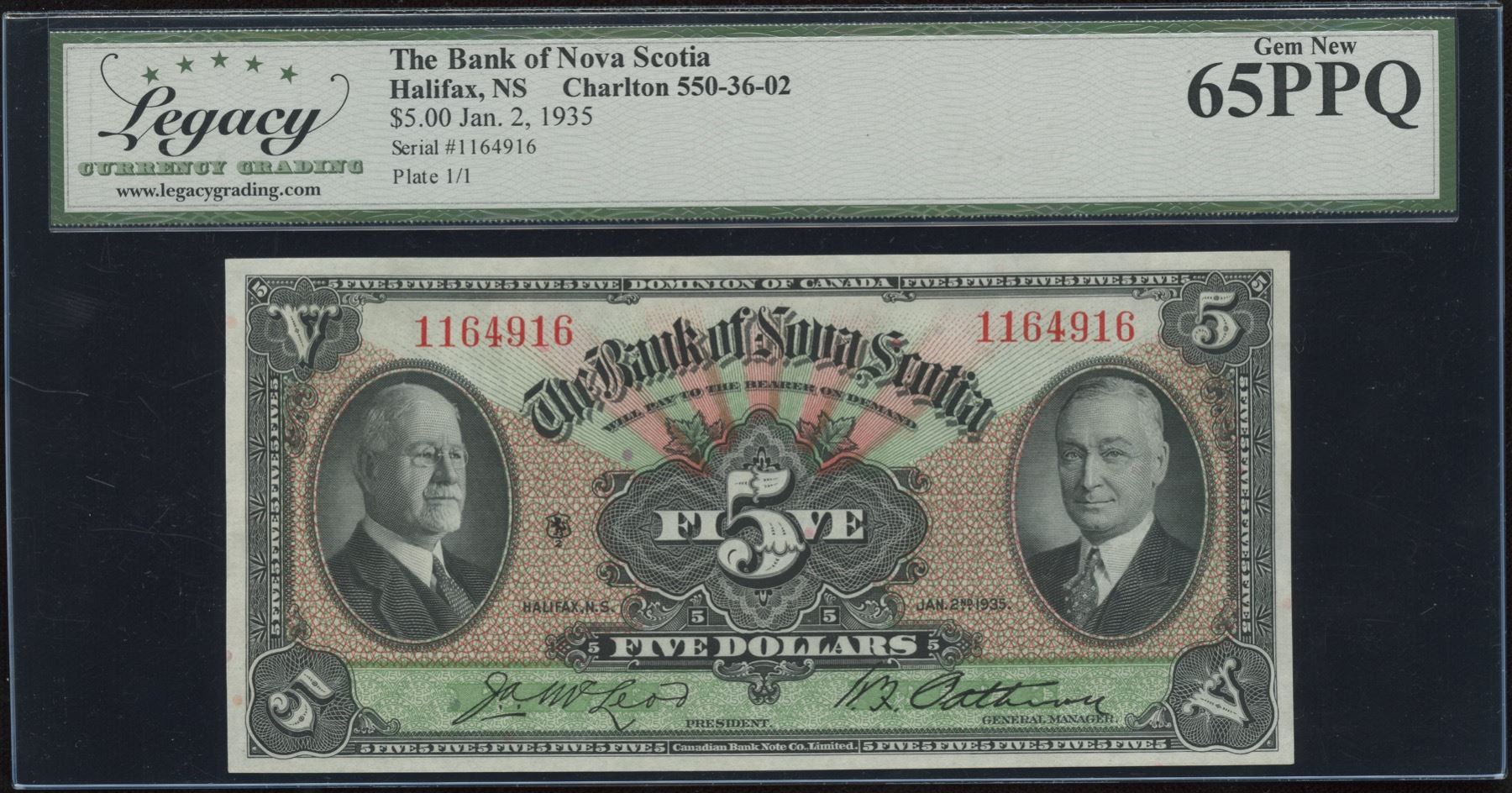 CH 550-36-02. Legacy Gem New 65PPQ. Again, great original colours and pristine paper quality. S/N: 1164916. Consecutive with the previous lot.