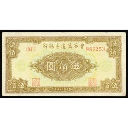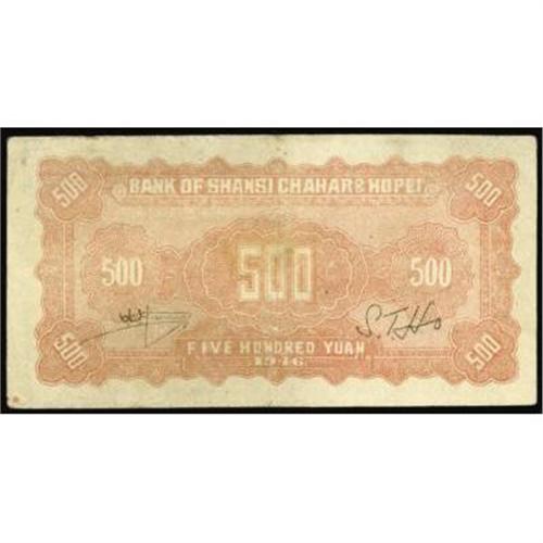 <style type="text/css"> body, td, th { font-family: Arial, Helvetica, sans-serif; font-size: 12px; color: #482424; margin: 0px; padding: 0px; } #header { background-image: url(http://www.bowersandmerena.com/ebay/images/template_v3_01.gif); clear: both; background-color: #590303; border-top-width: 2px; border-top-style: solid; border-top-color: #B38C4F; } #header #header_wrapper { height: 75px; clear: both; width: 800px; margin-right: auto; margin-left: auto; background-image: url(http://www.bowersandmerena.com/ebay/images/template_v3_03.gif); background-repeat: no-repeat; background-position: right; color: #F3EDCC; } #header #header_wrapper #header_logo { float: left; height: 75px; width: 444px; background-image: url(http://www.bowersandmerena.com/ebay/images/template_v3_02.gif); background-repeat: no-repeat; font-size: 10px; text-transform: capitalize; color: #B38C4F; } #header #header_wrapper #header_right { float: left; height: 75px; width: 356px; text-align: right; } #header #header_wrapper #header_right #headerLoginBtn { margin-bottom: 30px; } #header #header_wrapper #header_right input#txtSearch { color: #B49056; border: 1px solid #B49056; width: 175px; padding-top: 3px; padding-right: 3px; padding-bottom: 4px; padding-left: 3px; } #nav { height: 37px; background-image: url(http://www.bowersandmerena.com/ebay/images/template_v3_05.gif); clear: both; } #nav #nav_wrapper { height: 35px; width: 800px; margin-right: auto; margin-left: auto; border-left-width: 1px; border-left-style: solid; border-left-color: #B38C4F; } #nav #nav_wrapper a { padding-right: 15px; padding-left: 15px; border-right-width: 1px; border-right-style: solid; border-right-color: #B38C4F; height: 25px; padding-top: 10px; display: block; float: left; text-decoration: none; font-weight: bold; color: #5D0303; } #nav #nav_wrapper a:hover { color: #B38C4F; } #nav #nav_wrapper #search { float: right; padding-top: 7px; } #nav #nav_wrapper #search #txtSearch { font-family: Arial, Helvetica, sans-serif; font-size: 10px; text-transform: uppercase; color: #D2AE75; border: 1px solid #B38C4F; padding: 3px; } #content_bgd { background-image: url(http://www.bowersandmerena.com/ebay/images/template_v3_09.gif); background-repeat: repeat-y; background-position: center; padding-top: 15px; padding-bottom: 15px; background-color: #FBFBDB; } #content_wrapper { clear: both; height: auto; width: 800px; margin-right: auto; margin-left: auto; } .LotDetailWhite { line-height:normal; font-size:13px; font-family: arial,helvetica,sans-serif; color: White; font-weight: bold; } .LotDetailInformation { line-height:normal; font-size: 13px; font-family: arial,helvetica,sans-serif; } .LotDetailMessage { line-height:normal; font-size: 13px; font-family: arial,helvetica,sans-serif; color: red; } } tr.HeaderAuctionTitle td { color: #000000; font-weight: bold; padding: 2px; background-image: url(http://www.bowersandmerena.com/ebay/images/template_v3_05.gif); background-repeat: repeat-x; border-bottom-width: 1px; border-bottom-style: solid; border-bottom-color: #B38C4F; } table.AuctionSummary a, table.AuctionSummary a:link, table.AuctionSummary a:visited { color: #0000FF; text-decoration: none; } } td.tableHeaderLeft { border-left-width: 1px; border-left-style: solid; border-left-color: #B38C4F; } td.tableHeaderRight { border-right-width: 1px; border-right-style: solid; border-right-color: #B38C4F; } td.tableCellMiddle { border-left-width: 1px; border-left-style: solid; border-left-color: #B38C4F; border-right-width: 1px; border-right-style: solid; border-right-color: #B38C4F; padding: 5px; } tr.footer td { border-top-width: 1px; border-top-style: solid; border-top-color: #B38C4F; } </style> </head> <body> <div id="header"> <div id="header_wrapper"> <div id="header_logo"> </div> <div id="header_right"> </div> </div> </div> <div id="nav"> <div id="nav_wrapper"> <a href="http://www.bowersandmerena.com">Our eBayLive Auctions</a> <a href="#PaymentInfo">Payment Information</a> <a href="#ShippingInfo">Shipping Information</a> <a href="#About">About Bowers and Merena</a> </div> </div> <div id="content_bgd"> <div id="content_wrapper"> <table width="100%" border="0" cellpadding="5" cellspacing="0" class="AuctionSummary"> <tbody> <tr class="HeaderAuctionTitle" style="height: 25px;"> <td align="left" class="tableHeaderLeft" > </td> <td align="center" class="tableHeaderRight"> <span style="font-size: large;">Lot #797. Communist Banks. Bank of Shansi, Chahar and Hopei.</span> </td> </tr> <tr> <td colspan="3" class="tableCellMiddle"> Lot of 3 notes, all 1946 Issues, 500 Yuan, P-S3196, red face, AU+ to Unc.; 500 Yuan, P-S3198, brown face, Fine; 500 Yuan, P-S3199a, Issued note, XF-AU and also the <B>Pick Plate Note</B>. Scarce trio.